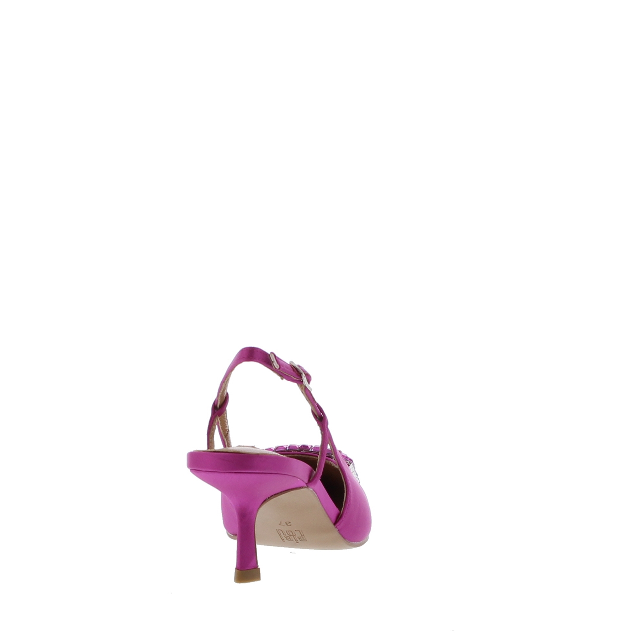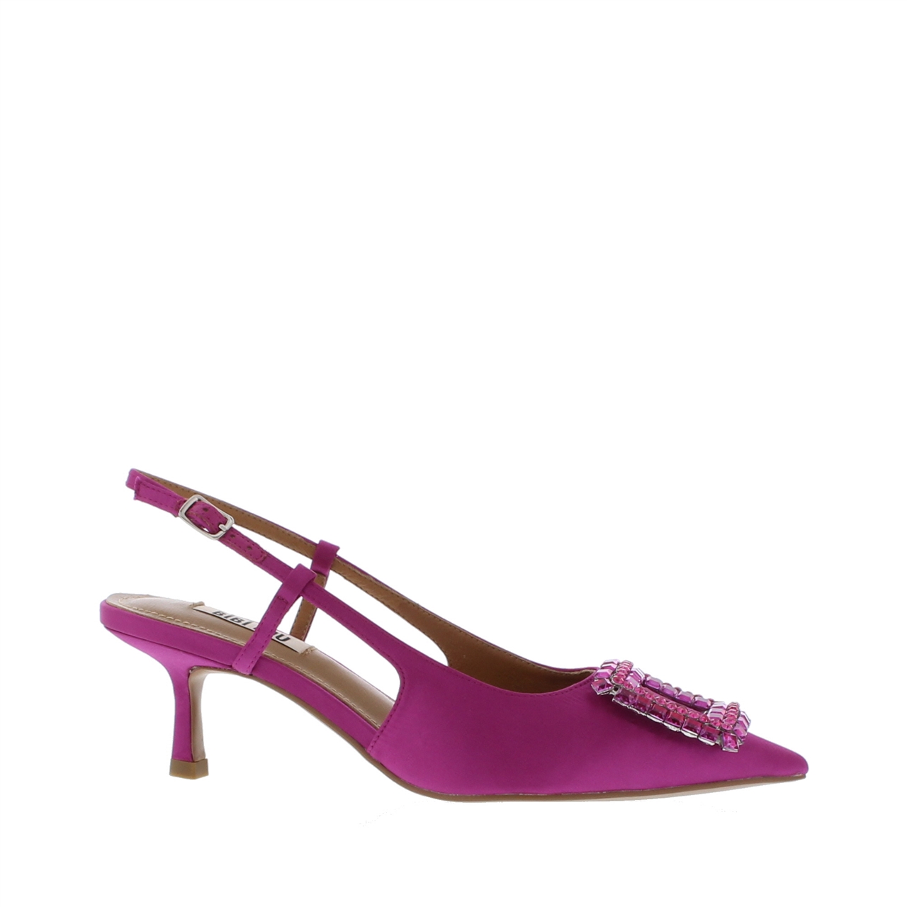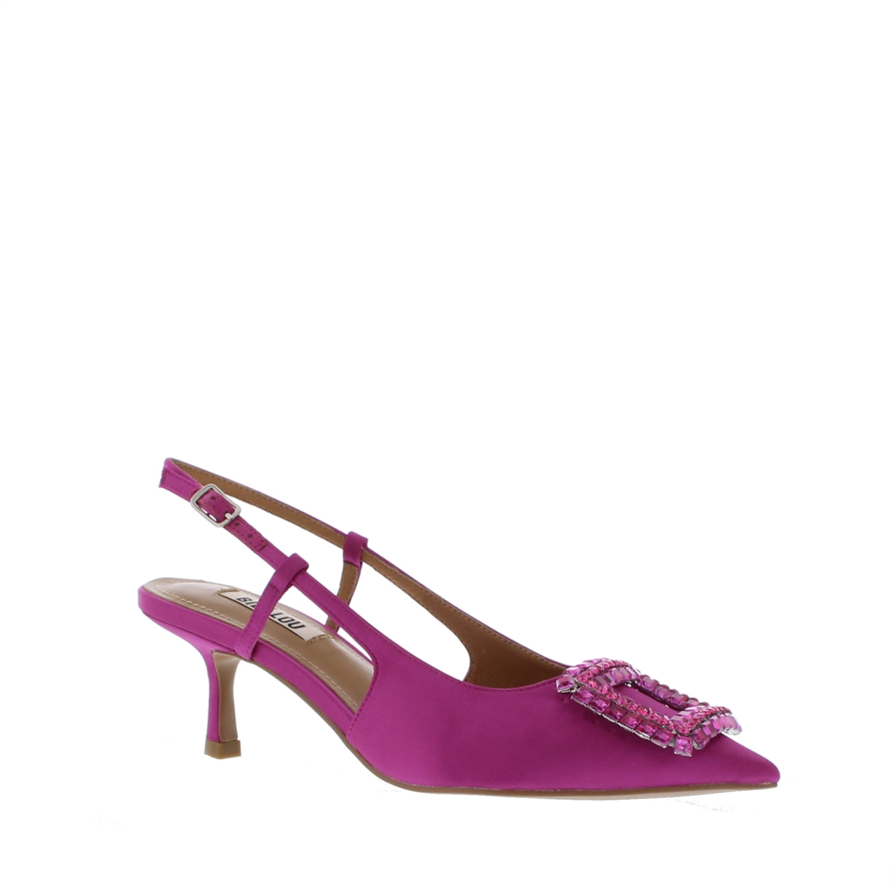 Deze slingback pump van Bibi Lou is een echte eye catcher! Het buitenwerk is gemaakt van satijn. De spitse neus is gesierd met een vierkante gesp met strass steentjes. Het queenie hakje is 5 centimeter hoog en is met satijn bekleed. Deze slingback pump is gemaakt voor echte shoe lovers en draag je super chic onder een mooie jurk of combineer je stoer onder een mom jeans. Wil je deze pump van BibiLou snel in huis hebben? Bestel dan online of kom naar een van onze winkels.