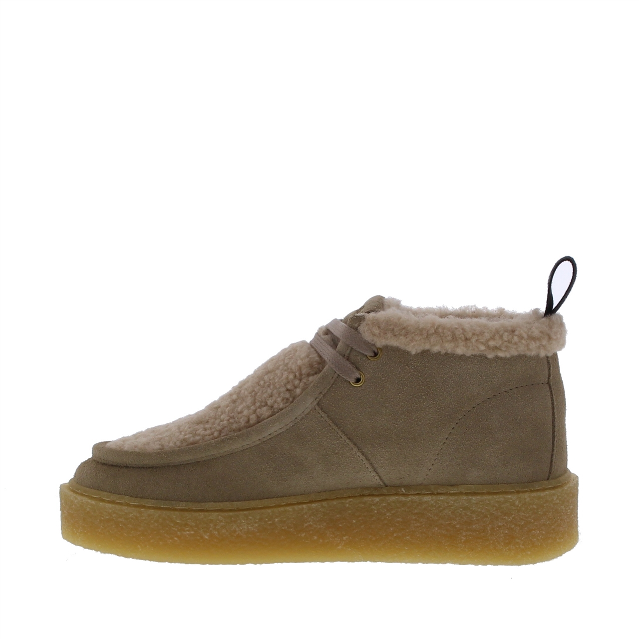 De Blackstone Enjar Saala is de perfecte combinatie van nonchalante stijl en ultiem draagcomfort. Deze beige veterbooty is uitgevoerd in een mix van suède en zachte mouton-details, wat zorgt voor een warme en luxe uitstraling. Het halfhoge model met enkelhoogte sluit mooi aan en geeft extra warmte tijdens de koudere maanden. De binnenvoering van stof voelt aangenaam en zacht, terwijl de stevige rubberzool stabiliteit en grip biedt op allerlei ondergronden. Dankzij de ronde leest en de praktische vetersluiting geniet je van een pasvorm die zowel comfortabel als functioneel is. Dit model straalt een ontspannen, eigentijdse look uit en laat zich eenvoudig combineren met zowel jeans als winterjurkjes.