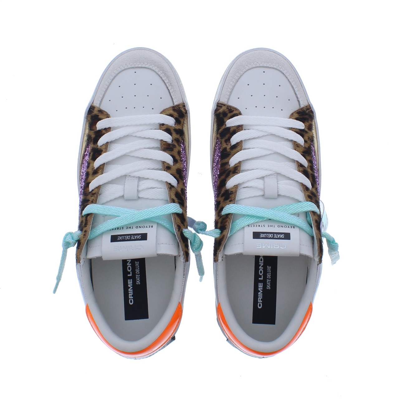 De Crime London 20130 Dames Sneaker 68 is dé perfecte mix van fashion en comfort. Met zijn witte basis, opvallend suède panterdesign en glitterdetails is deze sneaker een echte blikvanger. Ideaal voor vrouwen die houden van een stijlvolle en trendy look met een speelse touch. De buitenkant bestaat uit hoogwaardig leer, wat zorgt voor een luxe uitstraling en een duurzame kwaliteit. De binnenkant is gevoerd met zacht textiel, wat bijdraagt aan een comfortabele pasvorm. De ronde leest biedt voldoende bewegingsvrijheid, terwijl de stevige rubberen zool zorgt voor extra grip en demping. Of je nu kiest voor een casual, streetwear of chique outfit, de Crime London 20130 Sneaker is veelzijdig en moeiteloos te combineren.