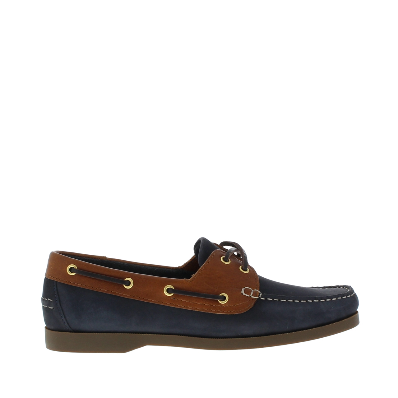 De uitvoering in blauw krijgt extra karakter door de contrasterende bruine details rondom de opening en de veterdoorvoer, afgewerkt met goudkleurige ringetjes. Langs de neus loopt een zichtbare sierstiknaad die de klassiekere look versterkt, terwijl de lage, bruine zool het geheel een nette basis geeft.