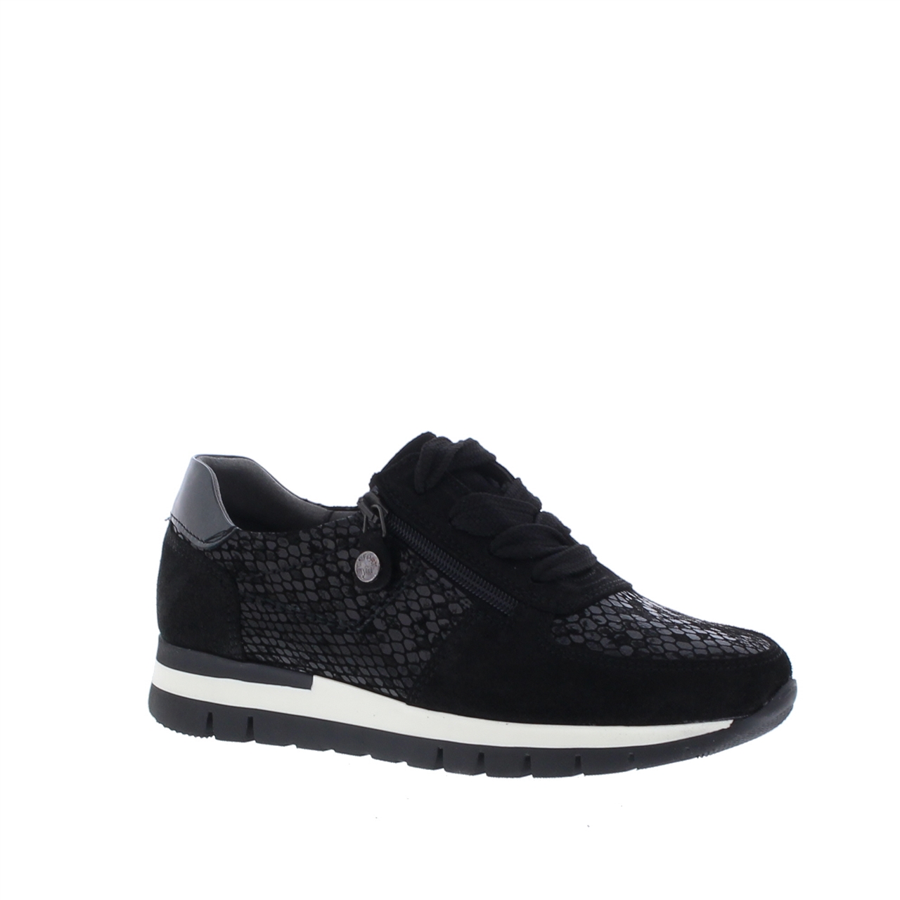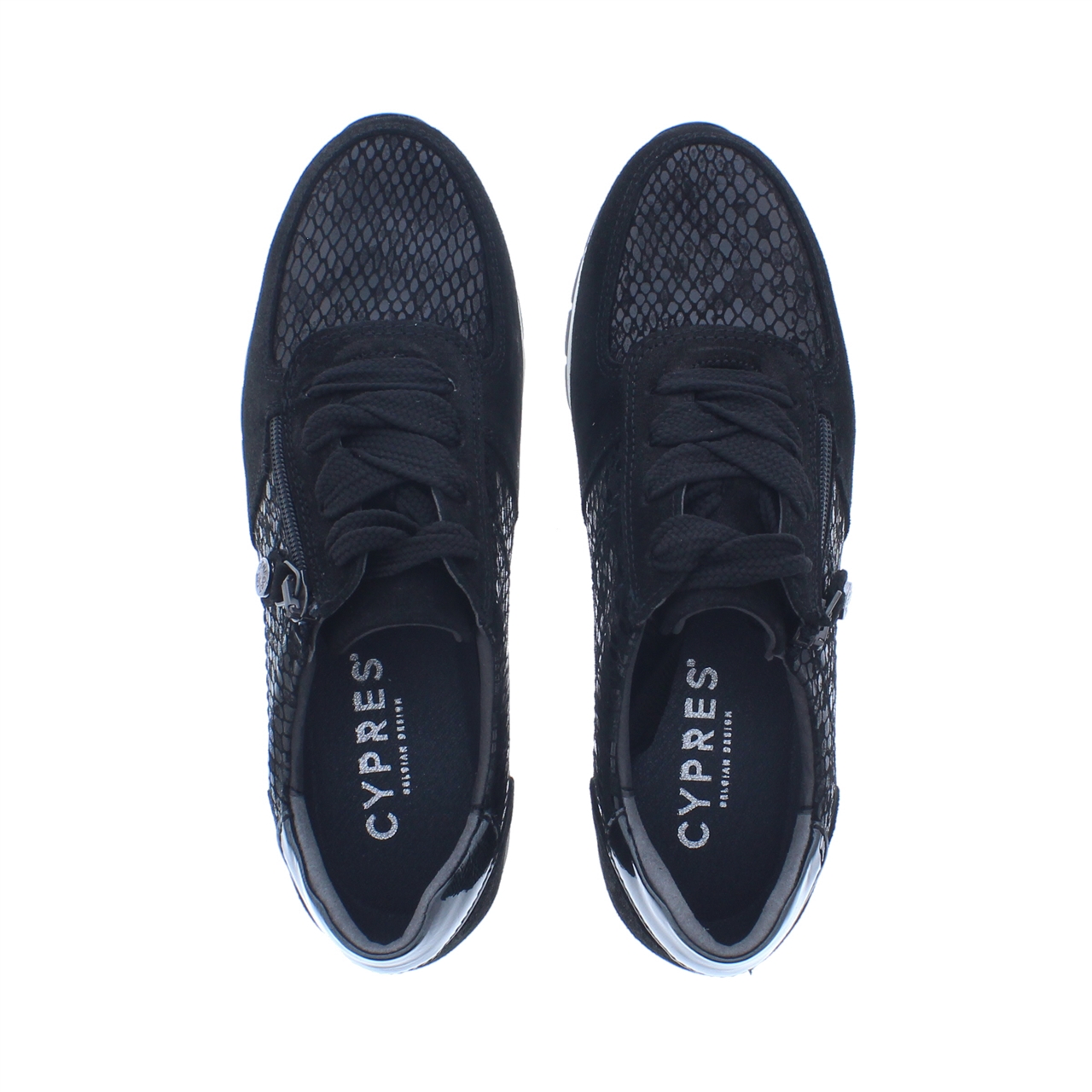 Ervaar stijl en comfort met de Cypres dames sneaker print. Deze sneaker combineert suède met een trendy dierenprint en heeft een leren voering. Het handige ritsje aan de zijkant maakt het aan- en uittrekken eenvoudig, terwijl de veters stevig kunnen worden gestrikt voor een perfecte pasvorm. De uitneembare zool biedt de mogelijkheid om eigen steunzolen te gebruiken. Ervaar moeiteloze stijl en gemak met de Cypres dames sneaker print.