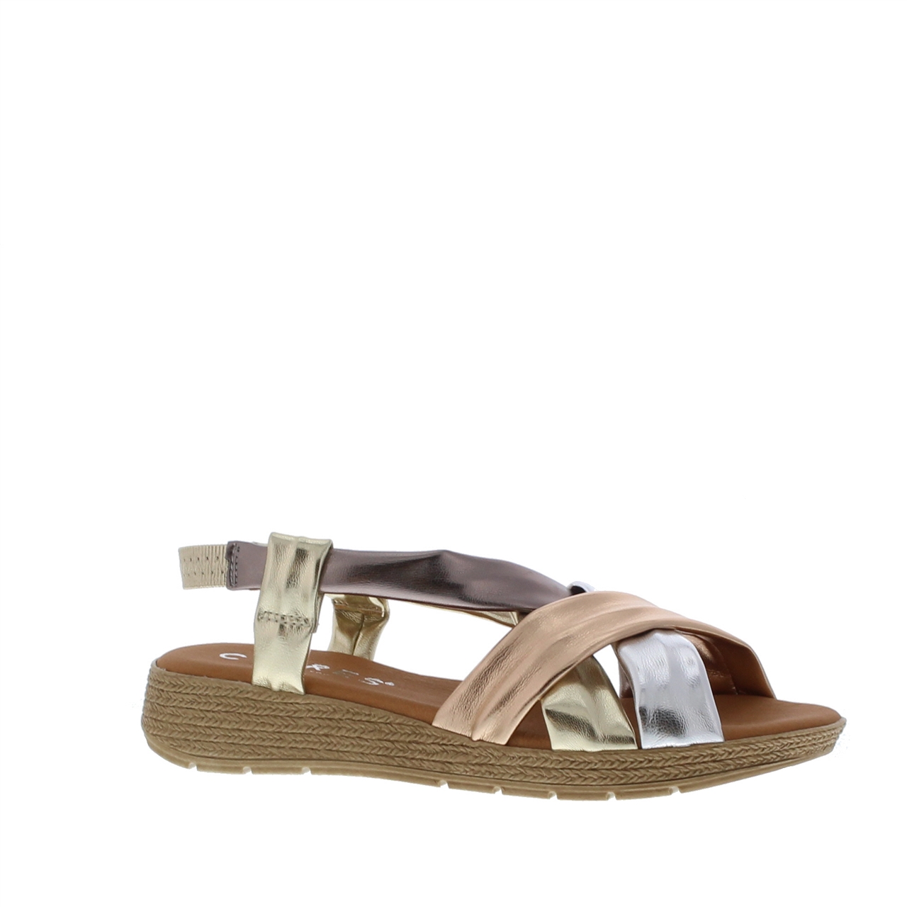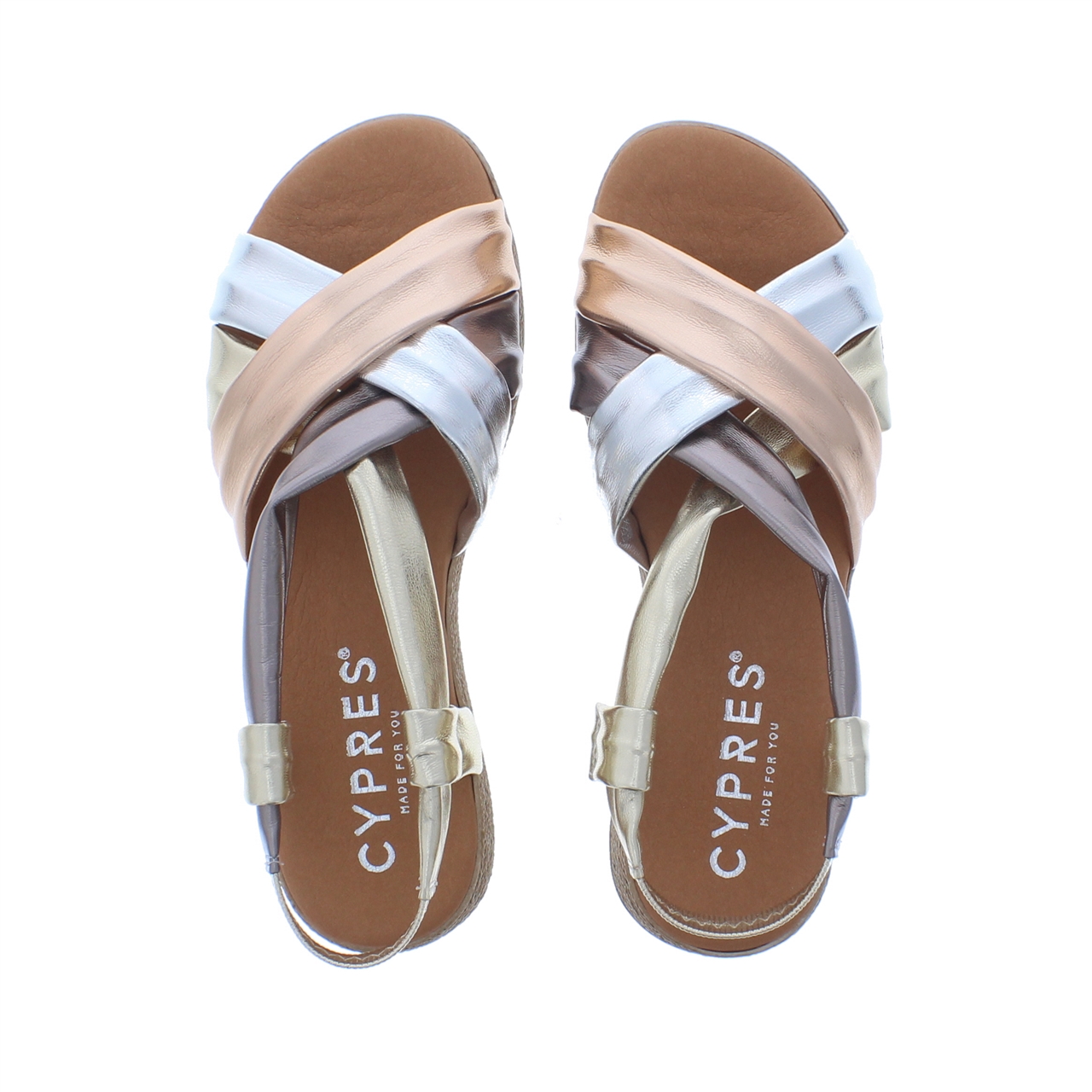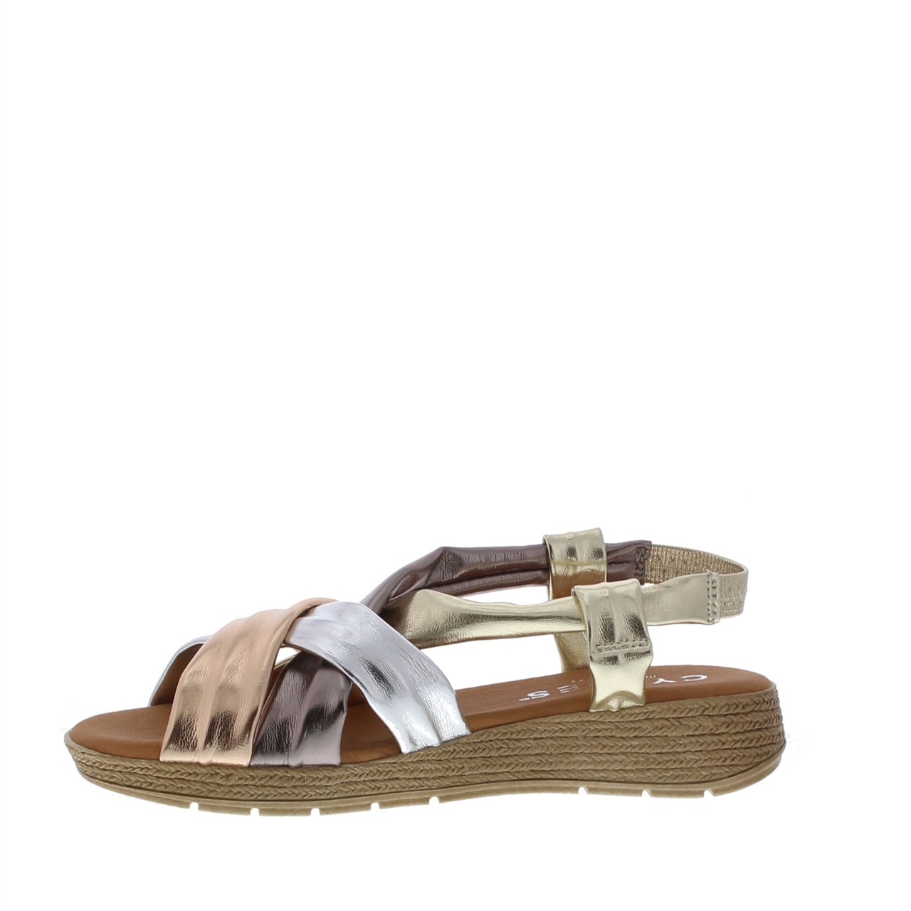 Deze sandaal van Cypres is perfect voor de aankomende zomerdagen. Naast het heerlijke comfort straalt dit model ook stijl uit. De diverse banden in metallic leer, voorzien van een elastische band aan de achterkant, geven een trendy uitstraling. De leren zool met zachte demping zorgt voor ultiem draagcomfort, terwijl de espadrille zool een extra zomers tintje toevoegt.