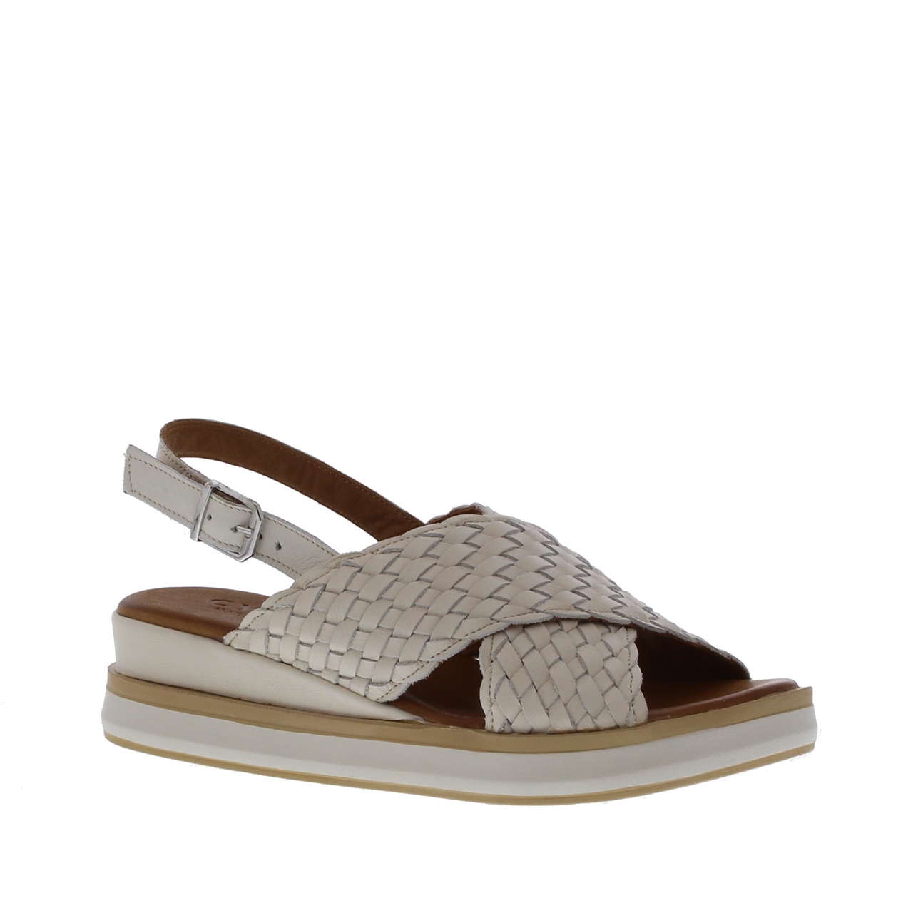 De Cypres Wies Kruisband Vlecht is een stijlvolle en comfortabele dames sandaal die perfect is voor het voorjaar en de zomer. Met een elegant kruisband ontwerp, mooie vlecht-details en een klein sleehakje, combineert deze sandaal moeiteloos mode en gemak. De sandaal is verkrijgbaar in twee frisse kleuren: goud voor een chique, glanzende look en wit voor een tijdloze zomerse uitstraling. De buiten- enbinnenkant zijn volledig uitgevoerd in soepel leer, wat zorgt voor een prettige pasvorm en ademend comfort. De flexibele rubberen zool geeft extra grip, terwijl de open leest en verstelbare gesp-sluiting zorgen voor een goede pasvorm en ondersteuning.