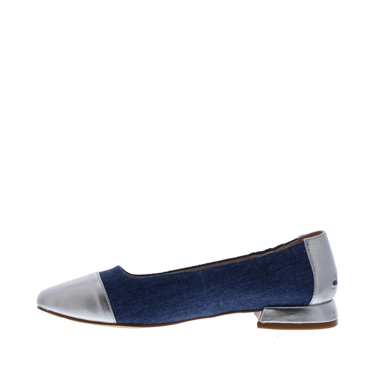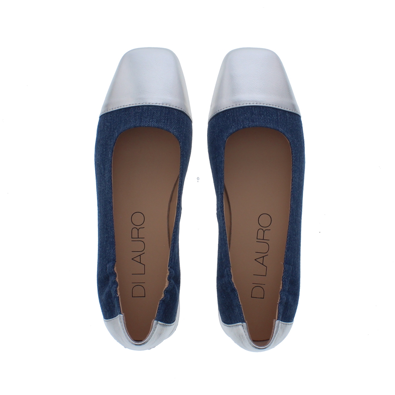 De Di Lauro Aisha Ballerina Tip in Light Blue Denim is een stijlvolle en comfortabele ballerina met een nette uitstraling. Het zachte denim textiele bovenwerk geeft de schoen een frisse, vrouwelijke touch, perfect voor zowel casual als geklede outfits. De zachte lakleren neus voegt een chic detail toe en zorgt voor een speels mooie combinatie.