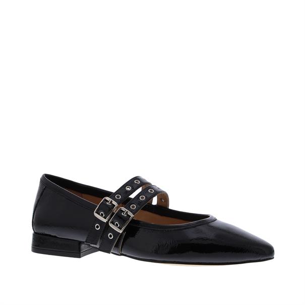 De Di Lauro Arlena Wreefband Ballerina is de perfecte combinatie van elegantie en comfort. Gemaakt van hoogwaardig zwart lakleer, straalt deze ballerina een luxe uitstraling uit. De spitse leest zorgt voor een slanke, vrouwelijke look, terwijl de twee verstelbare gespen op de wreefband niet alleen een stijlvol detail toevoegen, maar ook zorgen voor een optimale pasvorm. Met de Di Lauro Arlena Ballerina kies je voor een modieuze en veelzijdige schoen die comfort en elegantie moeiteloos samenbrengt.