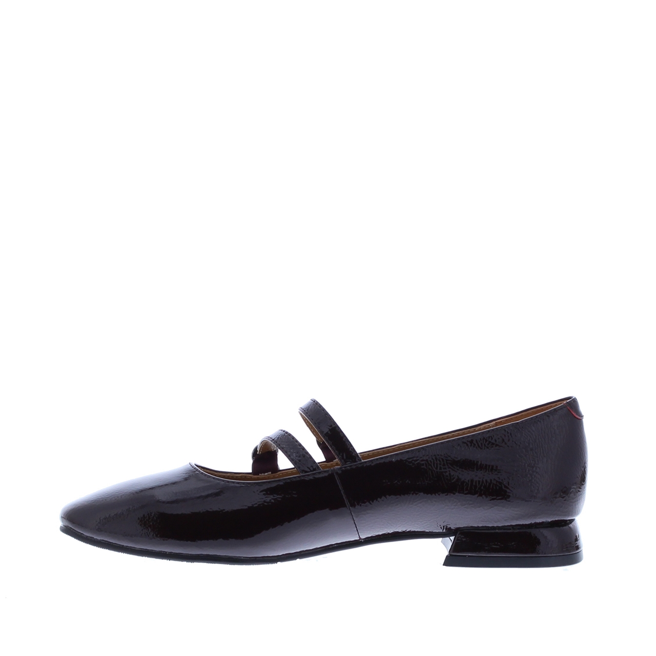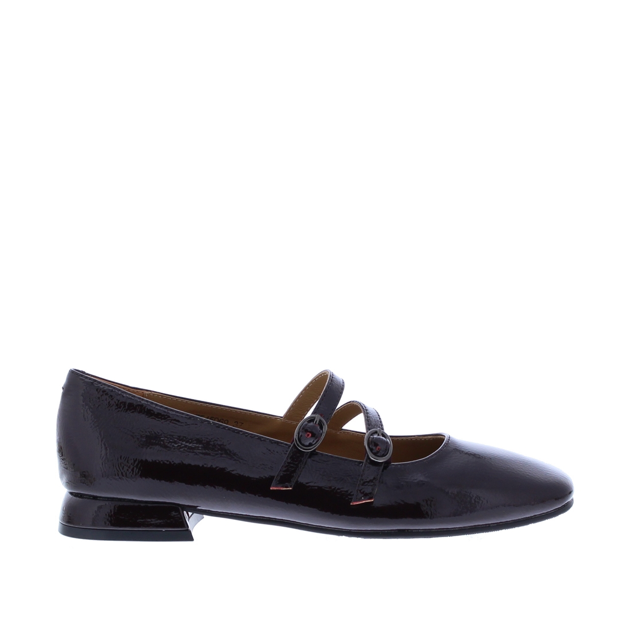 Het bovenwerk is uitgevoerd in lak, wat de schoen een chique finish geeft voor winterse dagen waarop je outfit net wat meer mag spreken. Aan de wreef zorgen twee bandjes met een gesp voor een verzorgd detail en een secure sluiting, zonder het minimalistische silhouet te doorbreken.