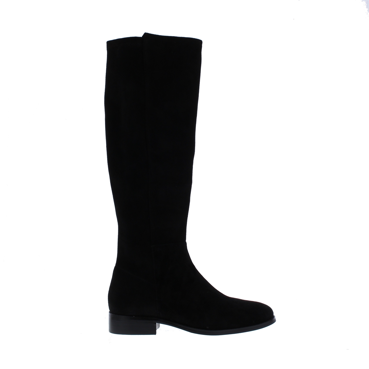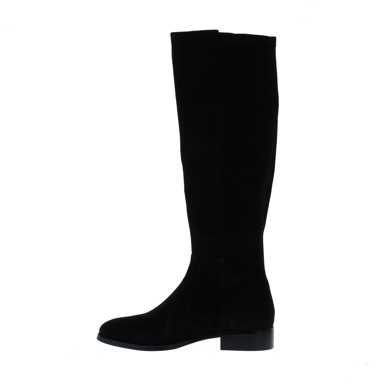 Deze lange stretch laars van Di Lauro is gemaakt van de hoogste kwaliteit stretch suède. Door dit elastische materiaal sluit deze laars perfect aan op het been en heeft het een breed pas bereik. De hak is 2 cm hoog, het is een platte laars met een rubber zool. De vorm van de voet is rond, maar wel pittig. Het bijzondere aan deze laars is dat er geen ritssluiting nodig is om deze makkelijk aan en uit te trekken. De voet van de laars is helemaal met leer gevoerd en heeft een vast voetbed. Kortom een fijne representatieve laars voor iedere dag.