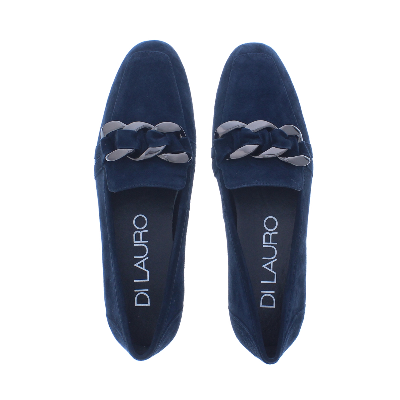 Deze loafer van Di Lauro heeft een tijdloos design. Het sierlijke kettingdetail op de voorvoet geeft de loafer een extra flair. Dit model is vervaardigd uit hoogwaardig suède en heeft een leren voering. De hak heeft een hoogte van 1 cm. Draag deze loafer elegant onder een pantalon of voor een stoere look onder een jeans.