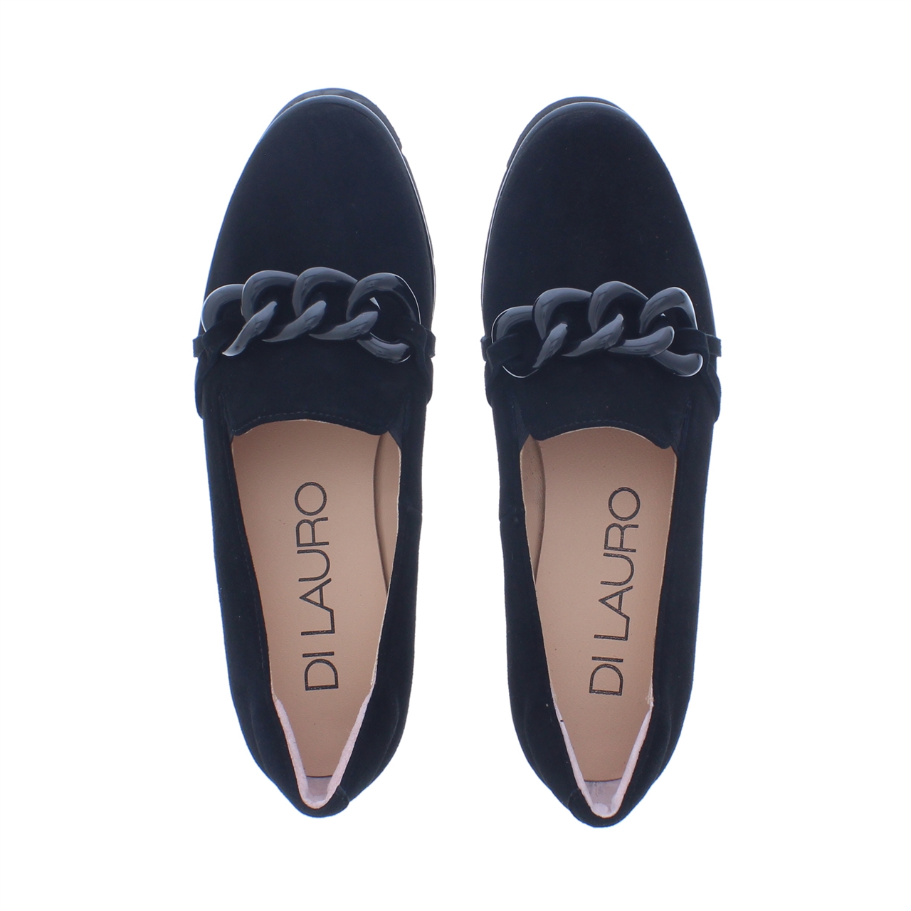 De Di Lauro loafer met sleehak is een tijdloos ontwerp met een alledaagse uitstraling. Dit Di Lauro-model is vervaardigd uit luxueus suède en heeft een binnenvoering van hoogwaardig leer. Het detail op de voorvoet voegt de perfecte finishing touch toe aan dit model. De sleehak biedt extra comfort, waardoor je er moeiteloos de hele dag op kunt lopen. Combineer dit model met een stijlvolle pantalon of casual jeans en je bent klaar voor elke gelegenheid.