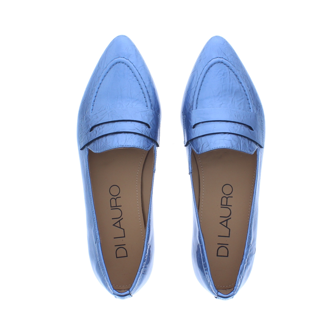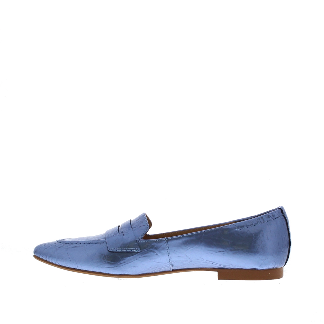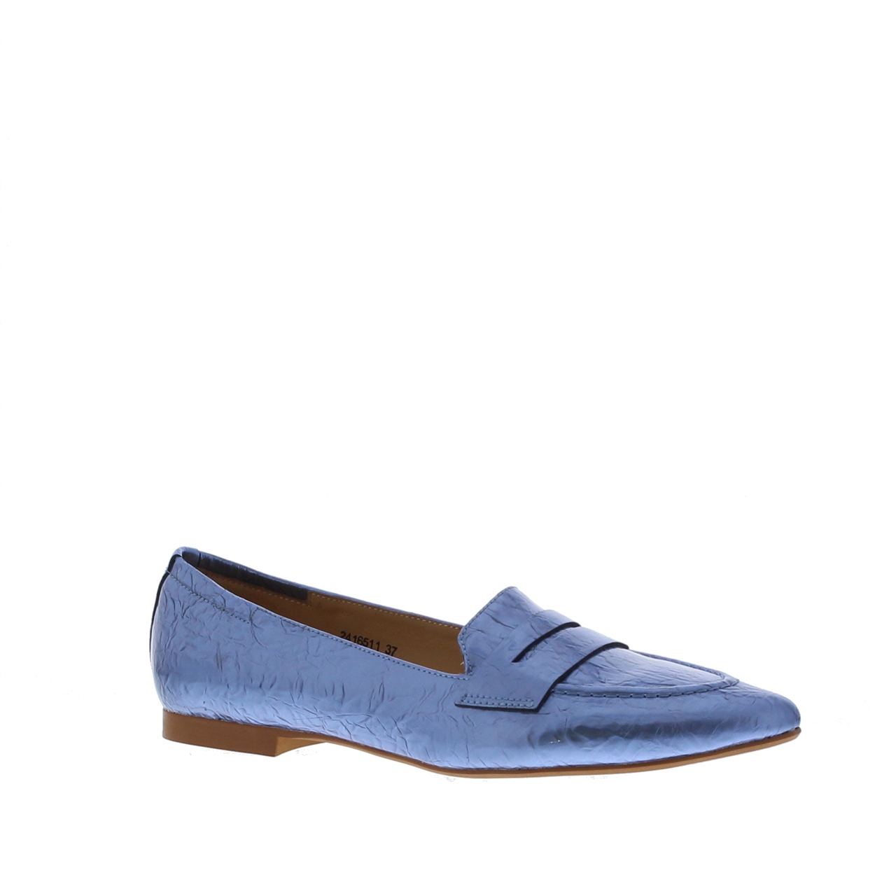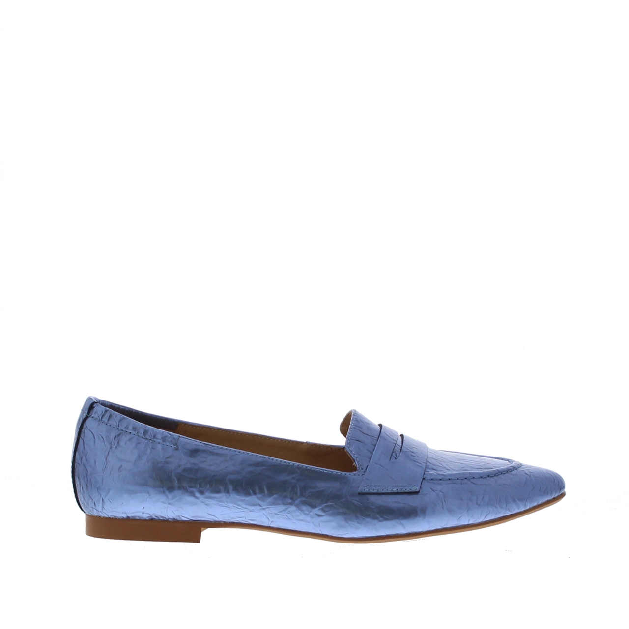 Deze dames penny loafer met puntige neus is vervaardigd in metallic lakleer, wat een elegante en glanzende touch toevoegt aan iedere outfit. Dit model heeft een zachte leren voering, wat zorgt voor extra comfort. Het kenmerkende detail van de penny band op de voorvoet voegt een vleugje tijdloze klasse toe aan dit model. Combineer dit model casual of chic met iedere outfit.