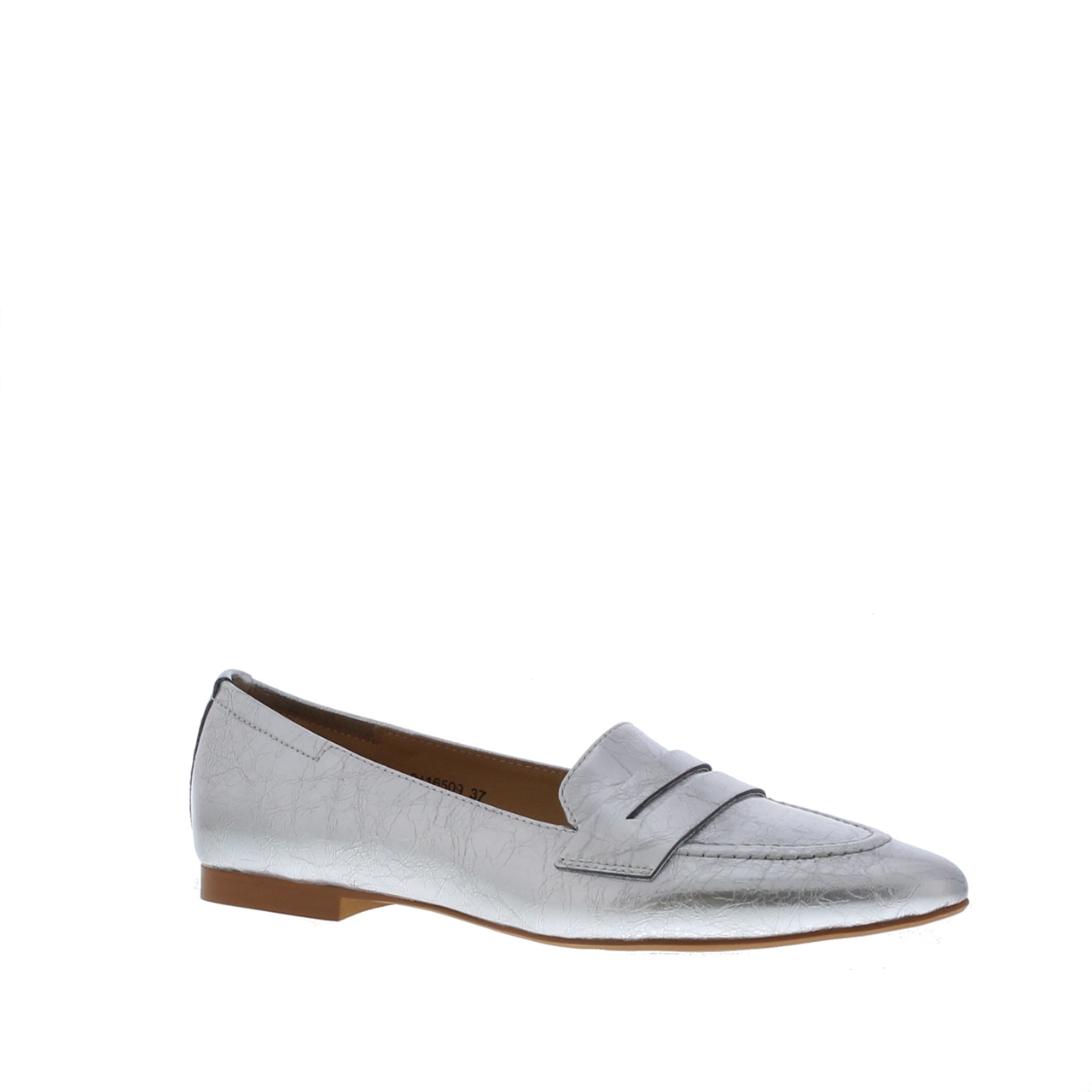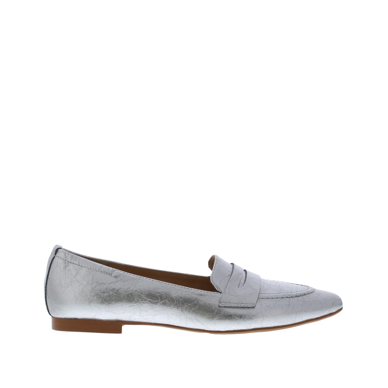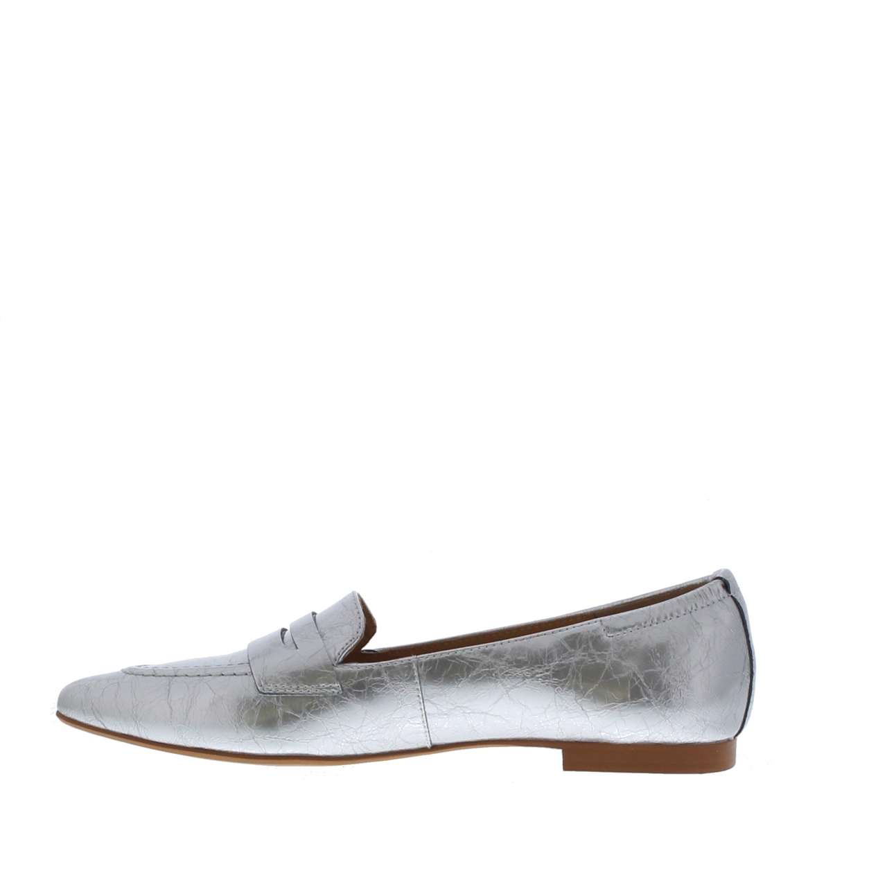 Deze dames penny loafer met puntige neus is vervaardigd in metallic lakleer, wat een elegante en glanzende touch toevoegt aan iedere outfit. Dit model heeft een zachte leren voering, wat zorgt voor extra comfort. Het kenmerkende detail van de penny band op de voorvoet voegt een vleugje tijdloze klasse toe aan dit model. Combineer dit model casual of chic met iedere outfit.