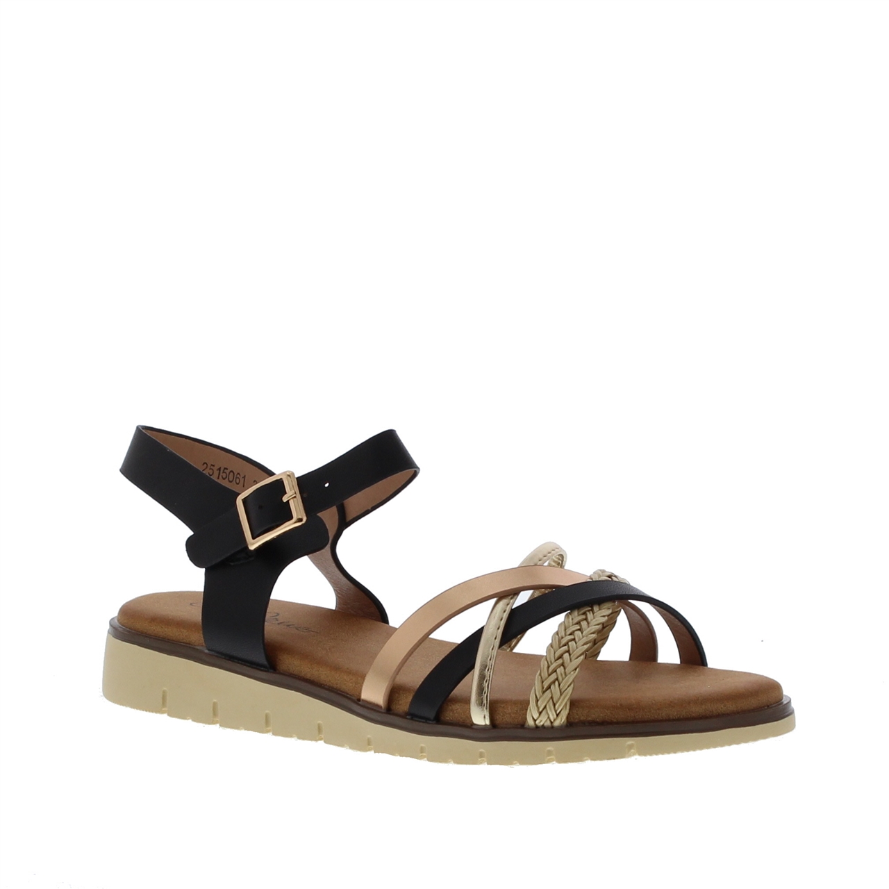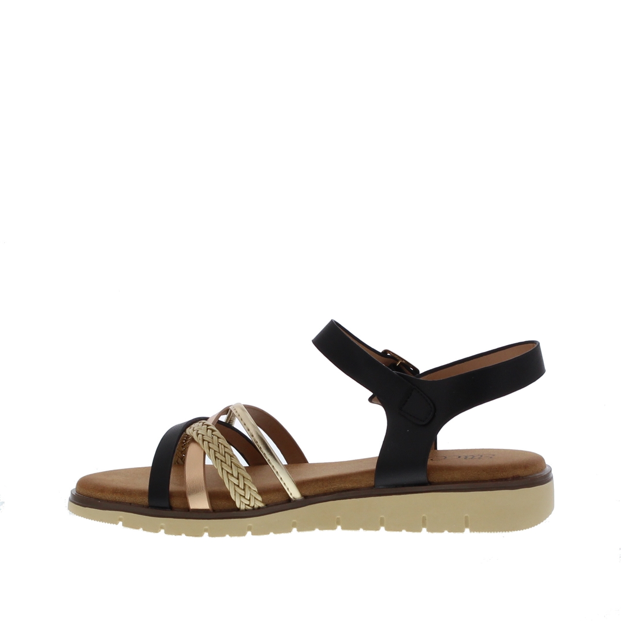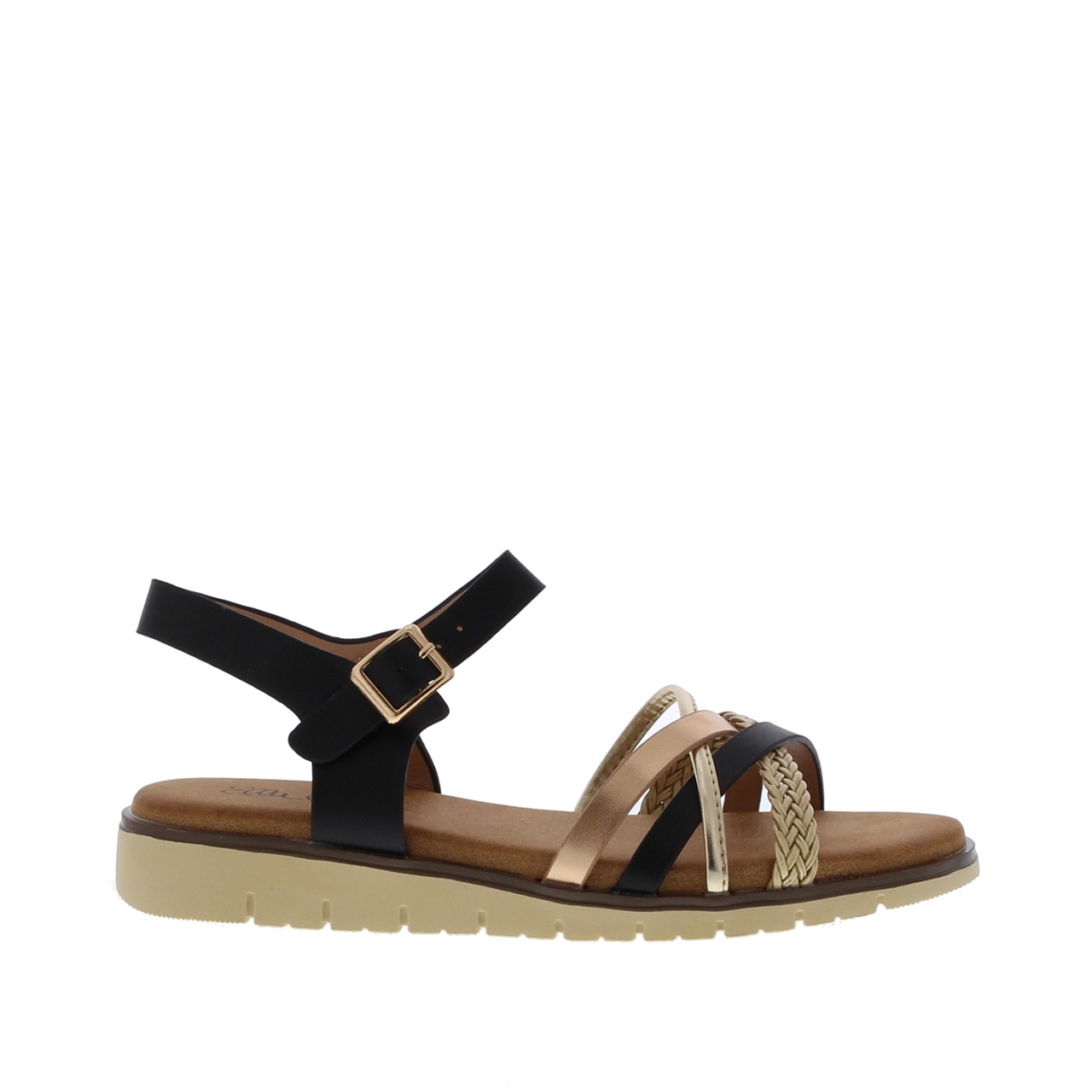 De Ella Cruz Tika Multi Banden is de perfecte combinatie van stijl en comfort. Deze prachtige sandaal met multi-bandjes detail biedt een trendy look en een comfortabele pasvorm, ideaal voor warme dagen. Verkrijgbaar in twee prachtige kleuren: zwart en bruin. De schoen past moeiteloos bij verschillende outfits en gelegenheden. De buitenkant is gemaakt van hoogwaardig imitatieleer, wat de sandaal een luxe uitstraling en een moderne look geeft. De binnenkant is eveneens gevoerd met imitatieleer, waardoor de sandaal zacht aanvoelt en prettig draagt. De stevige rubberen zool biedt uitstekende grip en stabiliteit, terwijl de open leest voor extra ventilatie zorgt. Dankzij de gespsluiting kan de pasvorm naar wens worden aangepast, waardoor je geniet van extra stevigheid en draagcomfort.