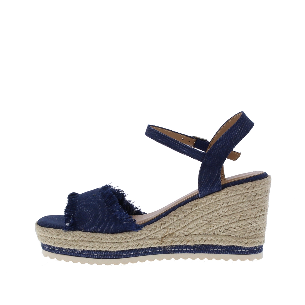 De Ella Cruz Weqar Espadrille Jeans Navy is de perfecte zomersandaal voor een trendy en comfortabele look. De denim blauwe buitenkant van canvas geeft een casual en modieuze uitstraling, terwijl de sleehak zorgt voor extra lengte en elegantie. Dankzij de verstelbare gesp sluit de sandaal perfect aan en biedt de rubberen zool voldoende grip voor langdurig draagcomfort. De binnenkant van imitatieleer voelt zacht aan op de huid, ideaal voor warme dagen. Voeg de Ella Cruz Weqar Espadrille toe aan je collectie en stap met vertrouwen de zomer in!