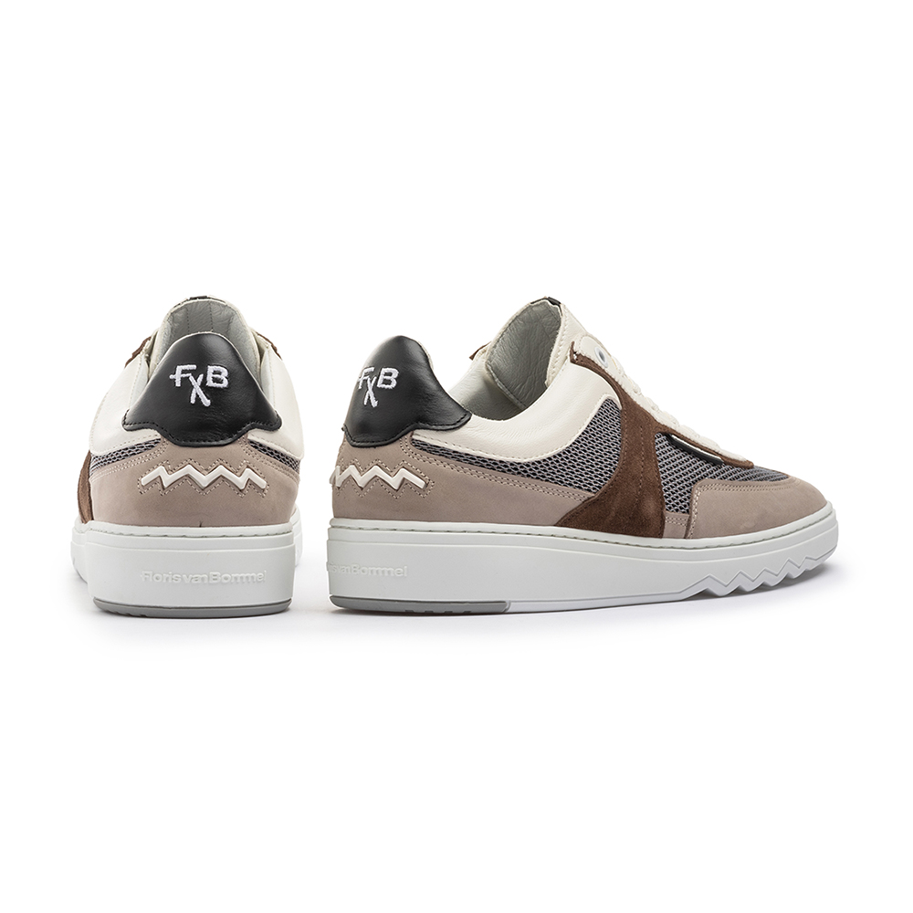 Dit model is er in bruin en licht blauw en speelt met een verfijnde mix van materialen aan de buitenkant: strak afgewerkte panelen worden gecombineerd met een sportieve mesh-structuur, waardoor de schoen luchtig oogt en rijk aan detail blijft. Binnenin zorgt leren voering voor een prettige, verzorgde feel bij elke stap.