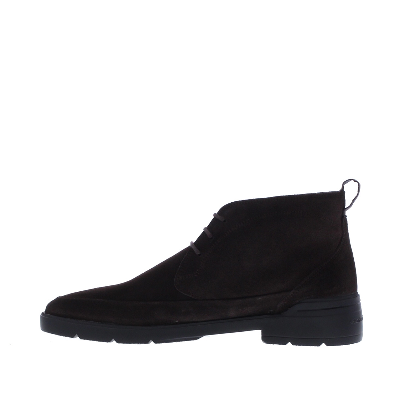 Deze boot is uitgevoerd in suède, wat het bovenwerk een zachte, matte finish geeft in zowel bruin als zwart. De enkellaars valt tot op de enkel en sluit met een vetersluiting, zodat je het silhouet mooi strak kunt aantrekken.