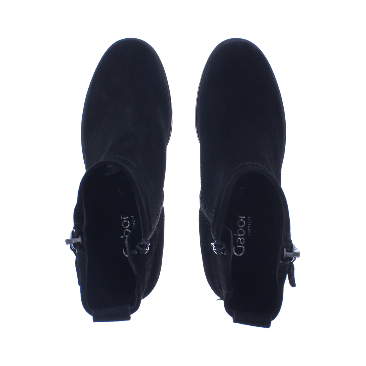 De Gabor Enkellaars G 47 Schwarz is de perfecte combinatie van tijdloos design en comfort. Deze enkellaars, uitgevoerd in elegant zwart suède, heeft een moderne uitstraling en een veelzijdige look die bij elke outfit past. Dankzij de zachte binnenvoering van stof en de stevige rubberen zool geniet je de hele dag van optimaal draagcomfort. De praktische ritssluiting maakt aan- en uittrekken extra gemakkelijk, terwijl de enkellange schachthoogte zorgt voor een stijlvolle en vrouwelijke touch.