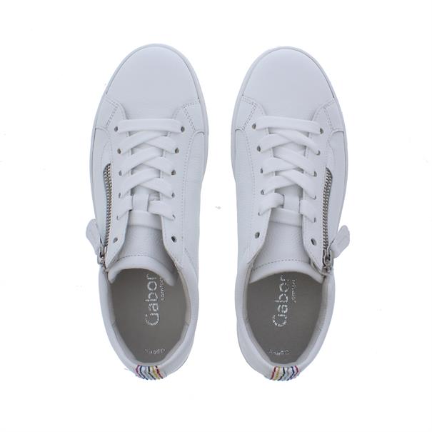 De Gabor Dames Sneaker G 50 Weiss is de perfecte combinatie van stijl, comfort en functionaliteit. Deze witte sneaker heeft een tijdloos design en is ideaal voor dagelijks gebruik. Dankzij de combinatie van een vetersluiting en een handige rits, trek je de schoen eenvoudig aan en uit. Gemaakt van hoogwaardig leer, biedt deze sneaker een luxe uitstraling en een duurzame afwerking. De textiele binnenkant zorgt voor een ademend en comfortabel gevoel, terwijl de rubberen zool optimale grip en stabiliteit geeft. Met zijn strakke witte design, comfortabele pasvorm en hoogwaardige afwerking is de Gabor Dames Sneaker G 50 Weiss een must-have voor elke vrouw die houdt van stijl en gemak.
