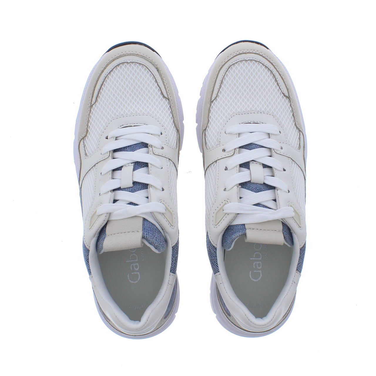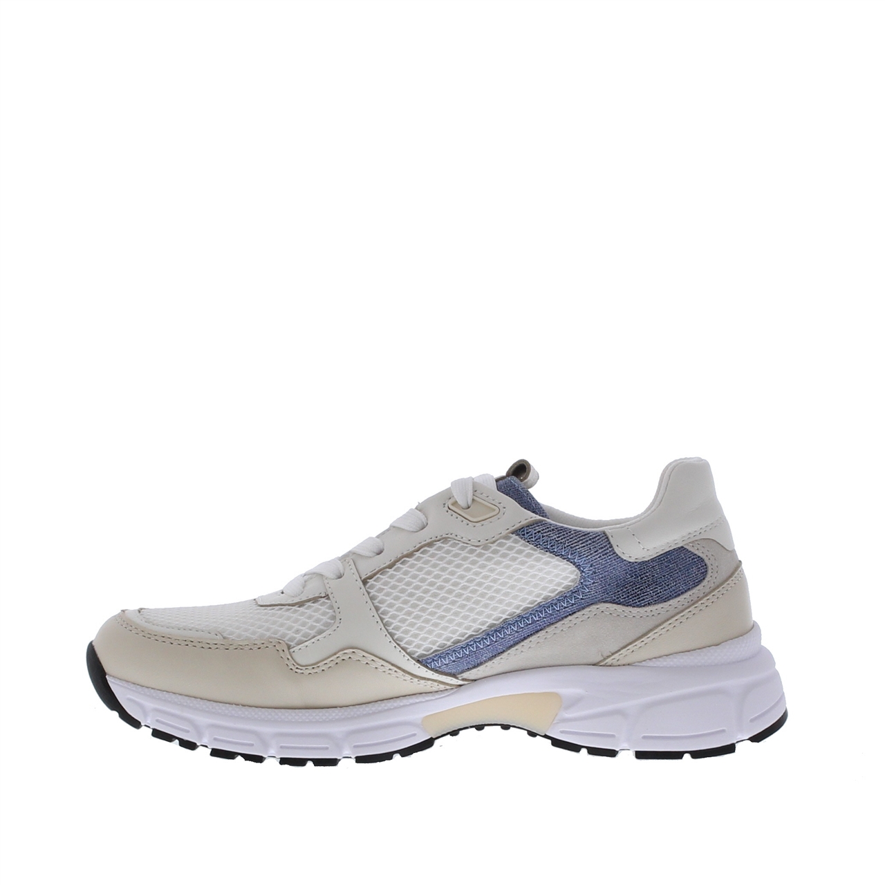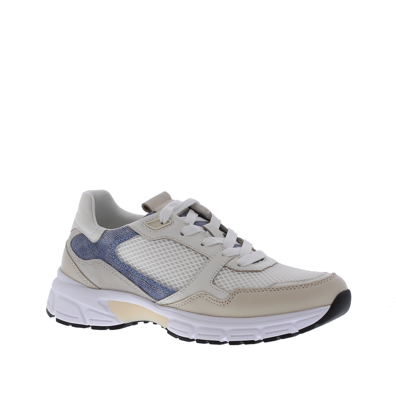 De Gabor Dames Sneaker G 23 Weiss/Panna/Blue is de perfecte combinatie van stijl, comfort en veelzijdigheid. Deze lichte, frisse sneaker is ontworpen met een mix van leer, textiel en mesh aan de buitenkant, wat zorgt voor zowel ademend vermogen als een moderne uitstraling. Het textiele interieur biedt extra comfort, zodat je de hele dag kunt genieten van een zachte pasvorm. De rubberen chunky zool biedt uitstekende grip en stabiliteit voor dagelijks gebruik. Deze sneaker is de ideale keuze voor de vrouw die op zoek is naar een veelzijdige, trendy en comfortabele schoen die geschikt is voor elke gelegenheid.