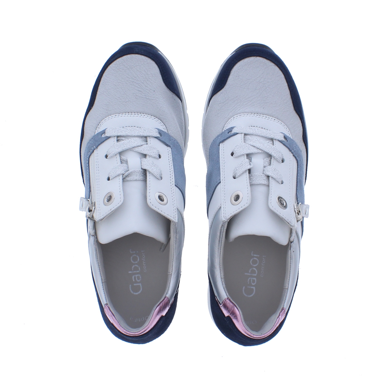 De Gabor Dames Sneaker K 66 in de kleuren bianco, marine en rose is een perfecte mix van stijl, comfort en functionaliteit. Deze sneaker is ideaal voor dagelijks gebruik en biedt een modieuze uitstraling met een subtiele kleurcombinatie. De buitenkant van de schoen is gemaakt van hoogwaardig suède, wat zorgt voor een luxe en zachte uitstraling. De textiele binnenvoering biedt ademend comfort, terwijl de rubberen zool zorgt voor extra grip en stabiliteit. Dankzij de combinatie van een vetersluiting en een handige rits, trek je de sneaker moeiteloos aan en uit.