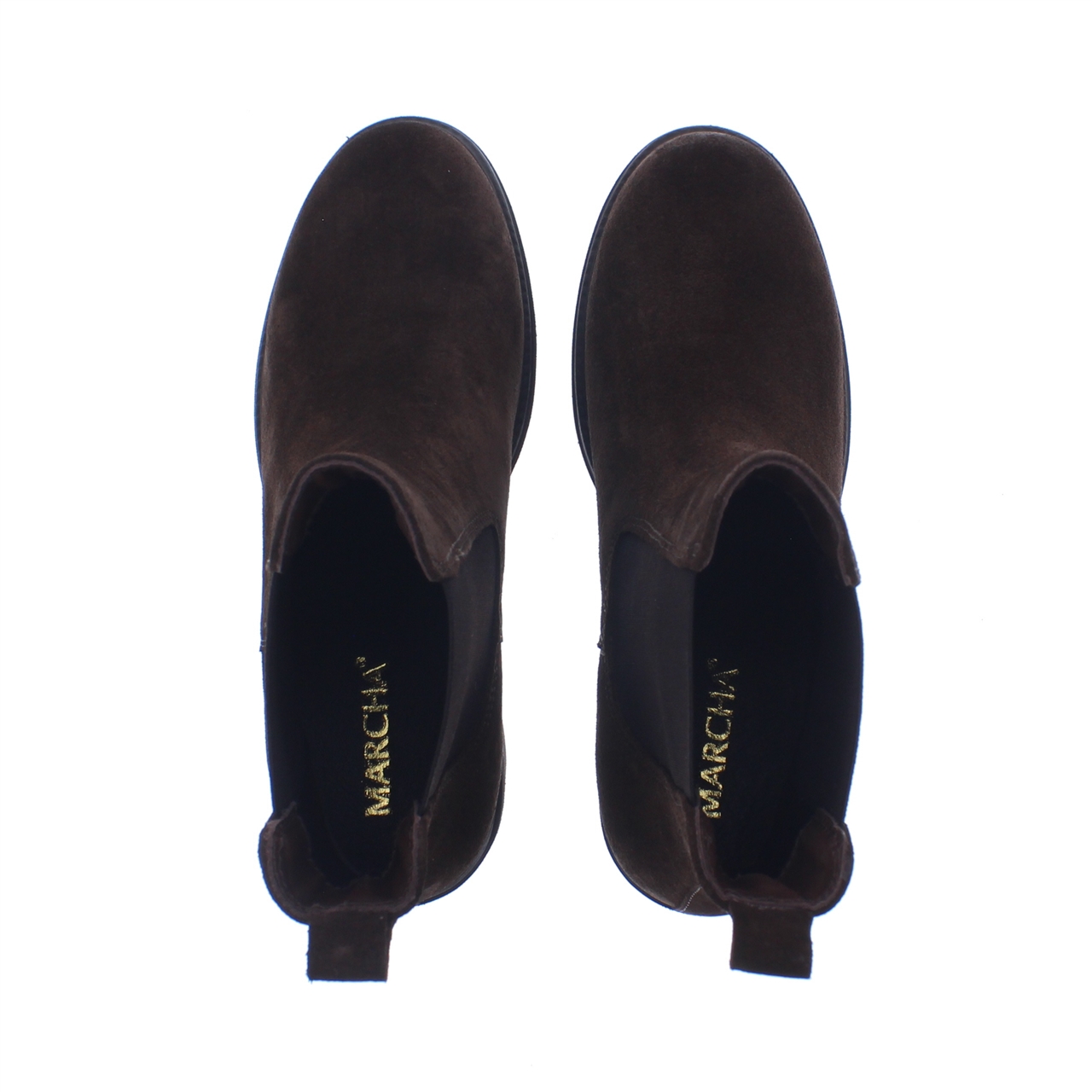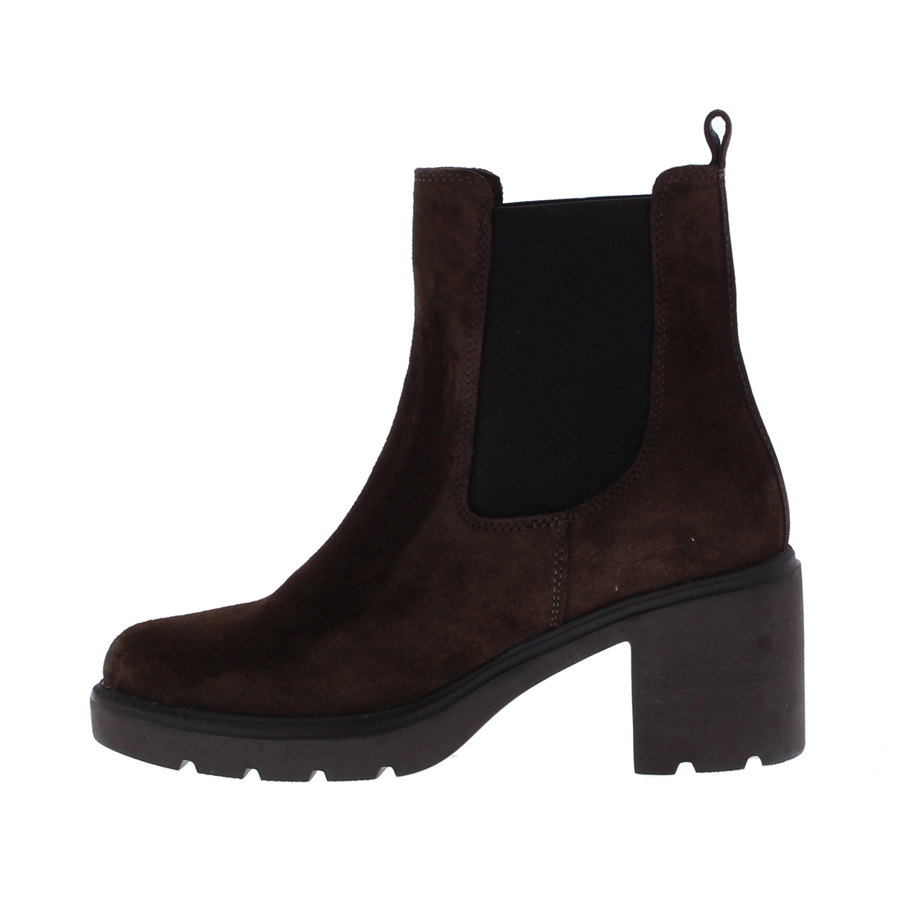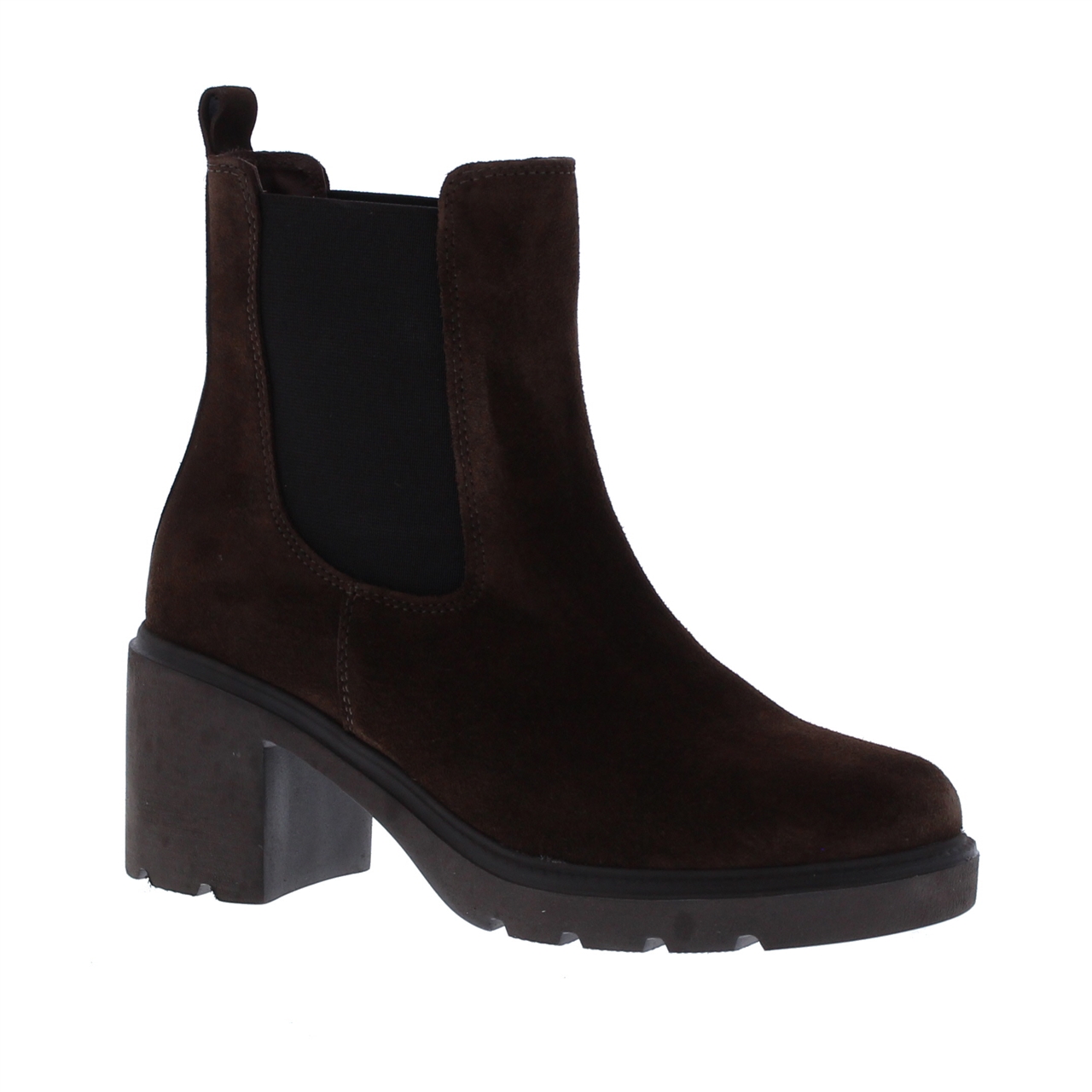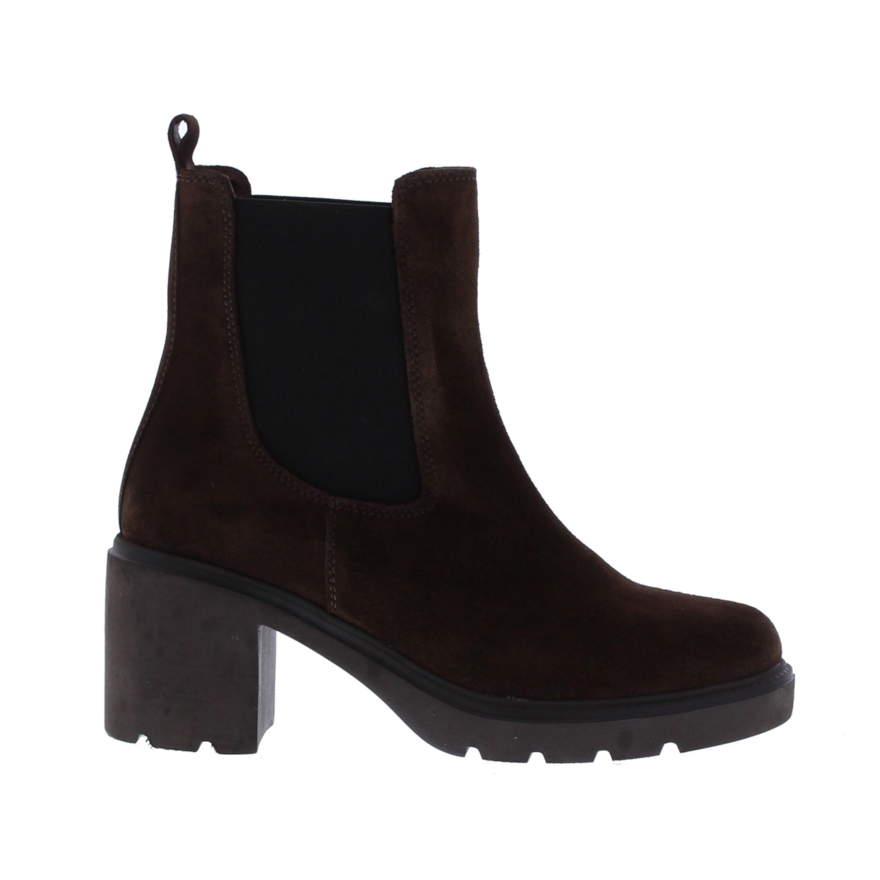De Gioia Yvette Chelsea is een elegante enkellaars in bruin suède, uitgevoerd met een blokhak en een profielzool voor extra grip. Dankzij de elastische inzetstukken trek je de schoen moeiteloos aan en uit.