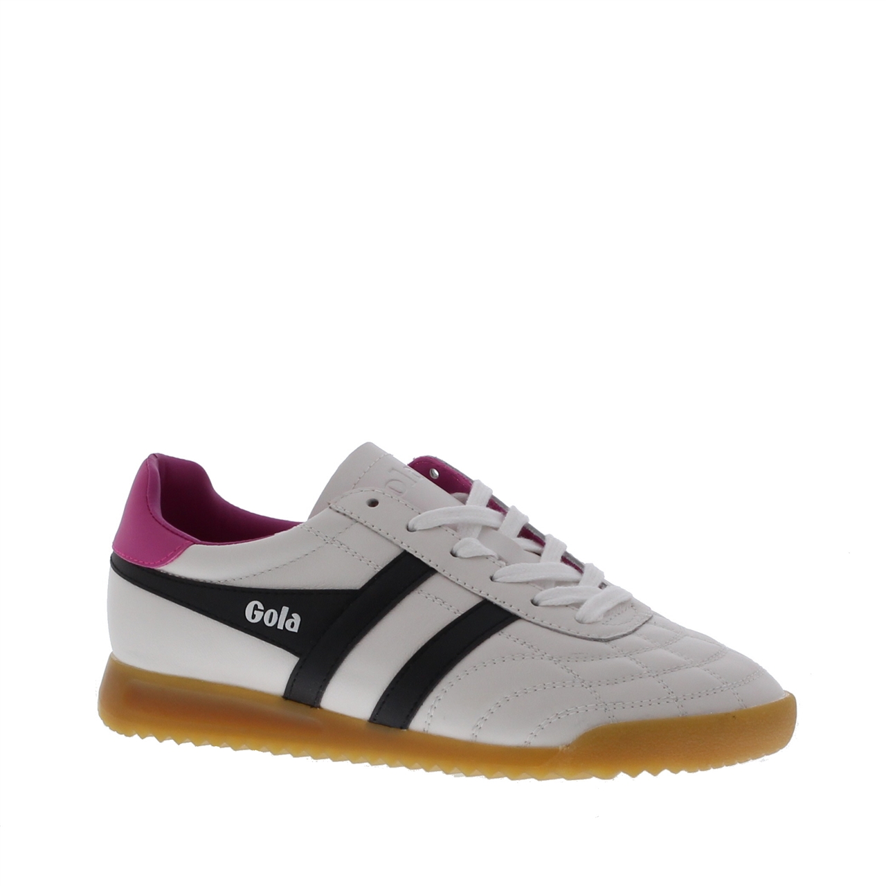 De Gola Stadium Dames Sneaker is de perfecte mix van retro en modern design. Uitgevoerd in hoogwaardig leer en voorzien van een comfortabele stoffen binnenvoering, biedt deze sneaker een heerlijke pasvorm voor dagelijks gebruik. De combinatie van wit, zwart en opvallend roze accenten geeft de sneaker een speelse en sportieve uitstraling. Dankzij de stevige rubberen zool geniet je van optimale grip en demping bij elke stap. Ga voor stijl en comfort met de Gola Stadium Sneaker en geef je look een trendy upgrade!