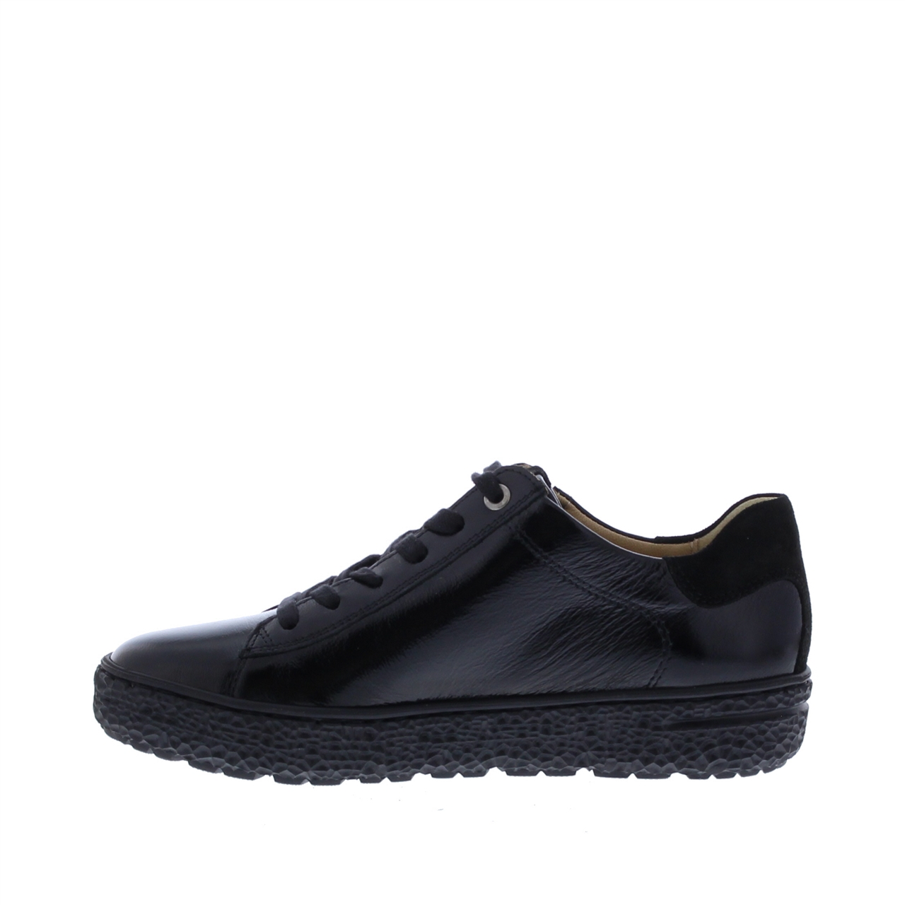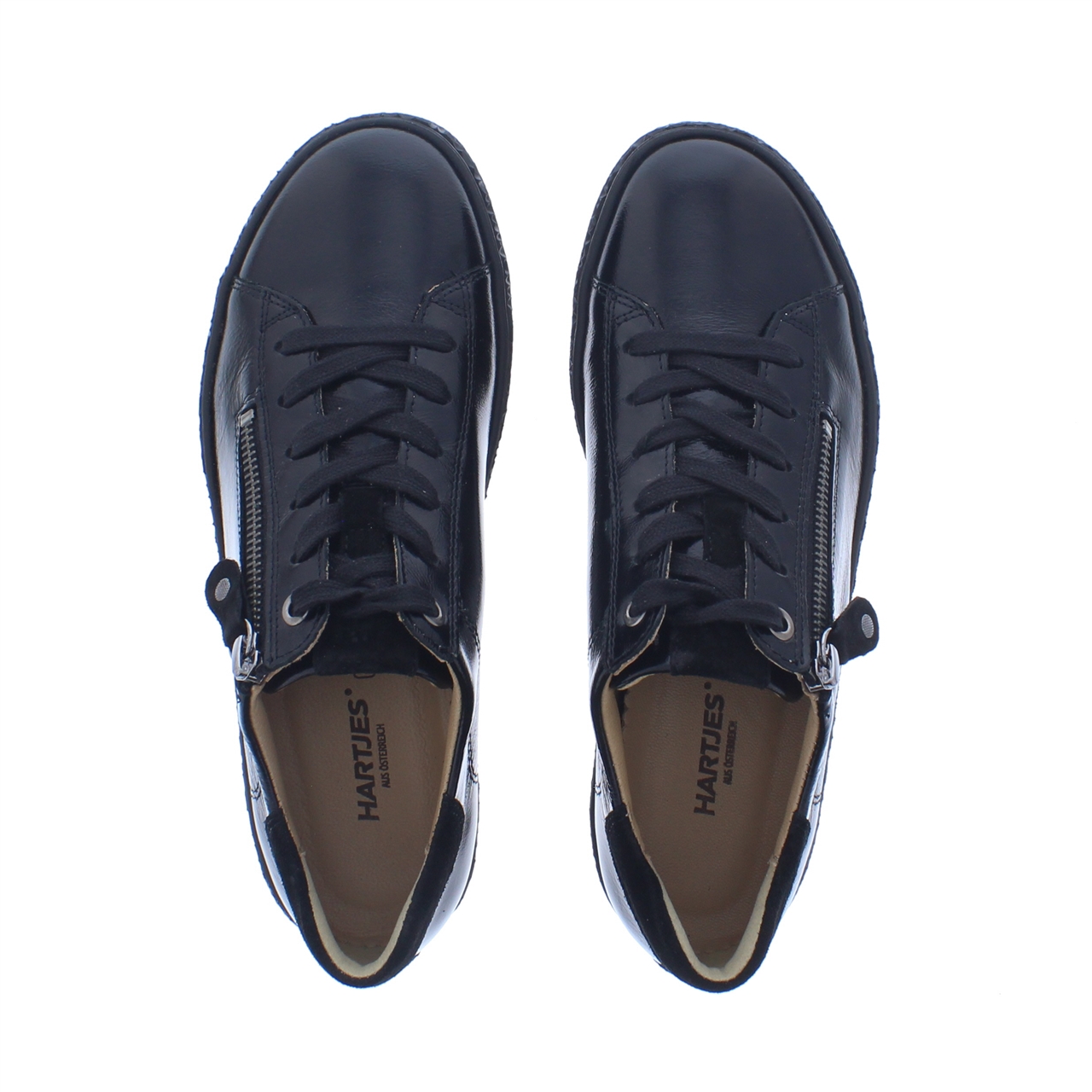 Hartjes Phil Shoe H Dames Veterschoen is een stijlvolle sneaker voor dames, uitgevoerd in zwart lak voor een moderne, verzorgde uitstraling.