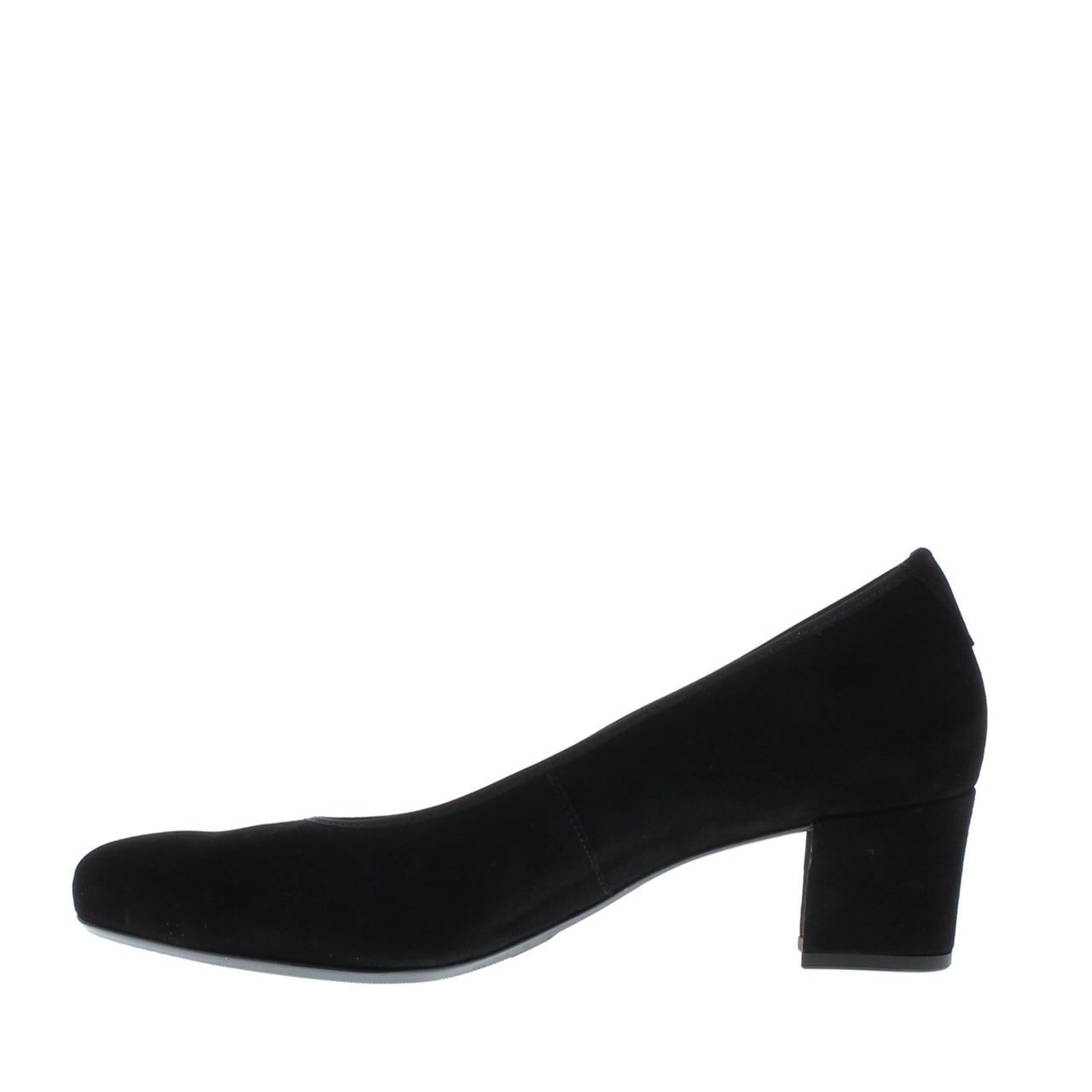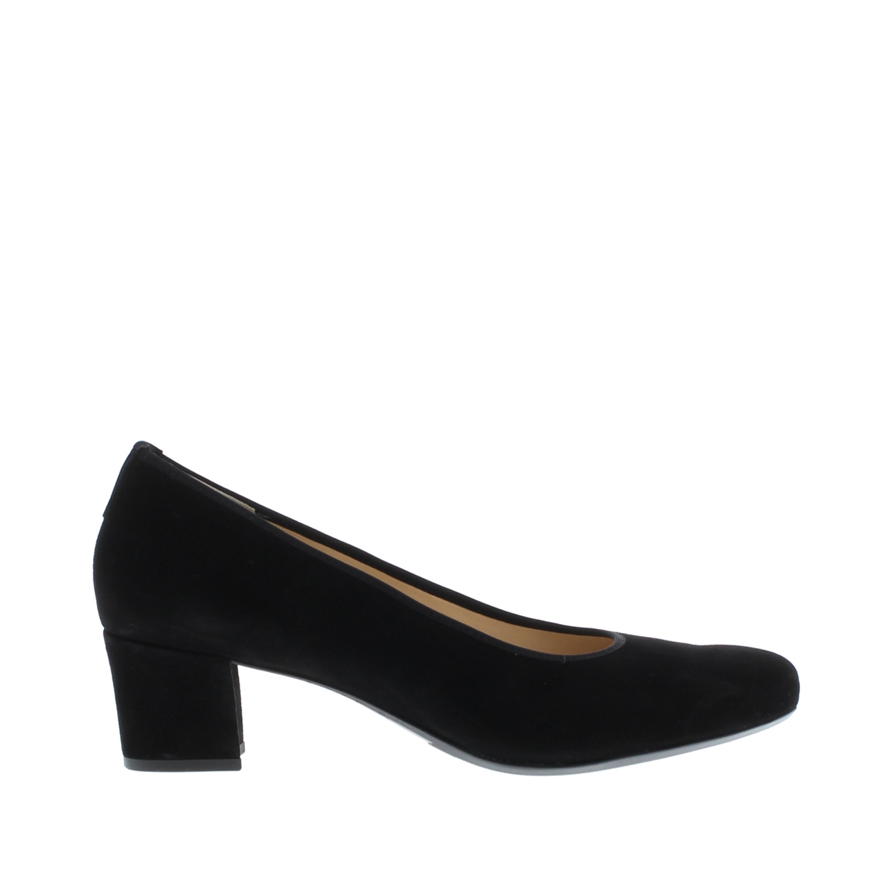 Het model is uitgevoerd met een gesloten neus en een mooi afgeronde belijning, waardoor de pump zacht oogt en makkelijk te combineren is. De stevige, middelhoge hak geeft een verfijnde houding zonder dat het geheel te opvallend wordt, terwijl de strakke afwerking zorgt voor een verzorgde, premium indruk.