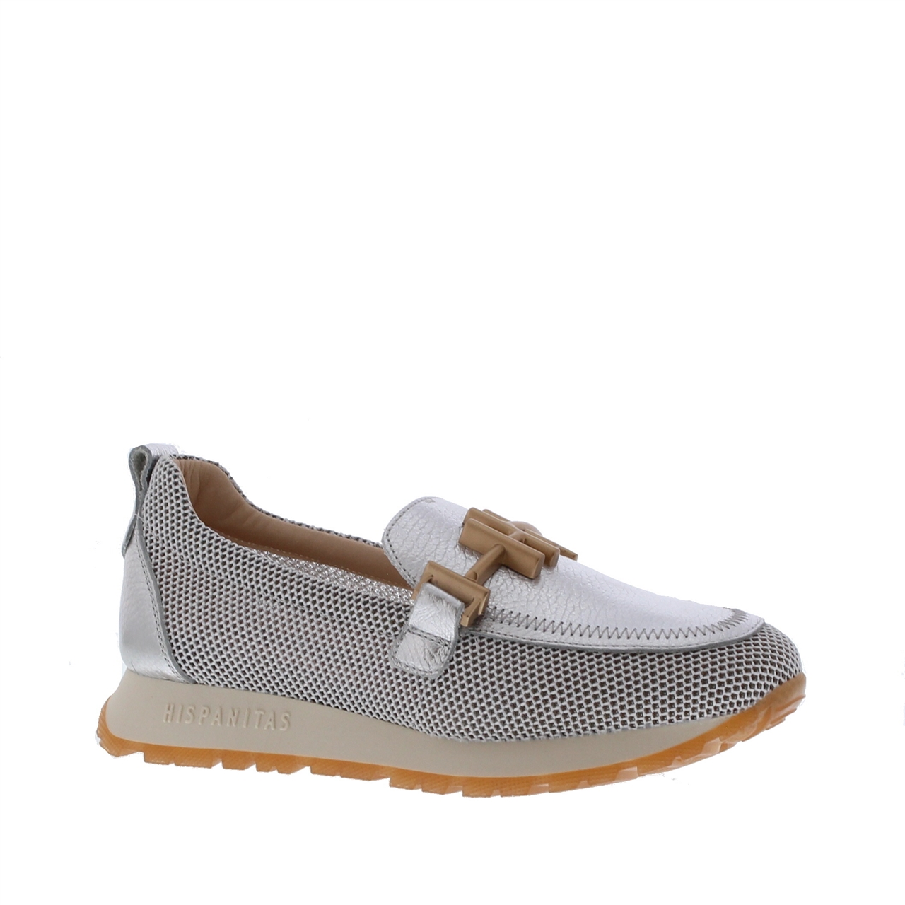 De Hispanitas Kansas Dames Instapper Melborne White Silver is de perfecte combinatie van elegantie en draagcomfort. De buitenkant is gemaakt van een luxe combinatie van leer en textiel, wat zorgt voor een chique uitstraling en een comfortabele pasvorm. De ronde neus biedt voldoende ruimte voor de tenen, terwijl het uitneembare voetbed de mogelijkheid geeft om eigen inlegzolen te gebruiken voor extra comfort. De instapper is voorzien van een stevige rubberen zool, die uitstekende grip en duurzaamheid biedt, ideaal voor dagelijks gebruik. Wat deze schoen extra bijzonder maakt, is het stijlvolle kettingdetail op de bovenkant, dat zorgt voor een modieuze en trendy uitstraling. Met zijn zilveren kleur is de Hispanitas Kansas Dames Instapper Melborne White Silver veelzijdig en eenvoudig te combineren met zowel casual als chique outfits. Of je nu een dag op pad bent of een elegante touch aan je look wilt toevoegen, deze instapper biedt het allemaal.