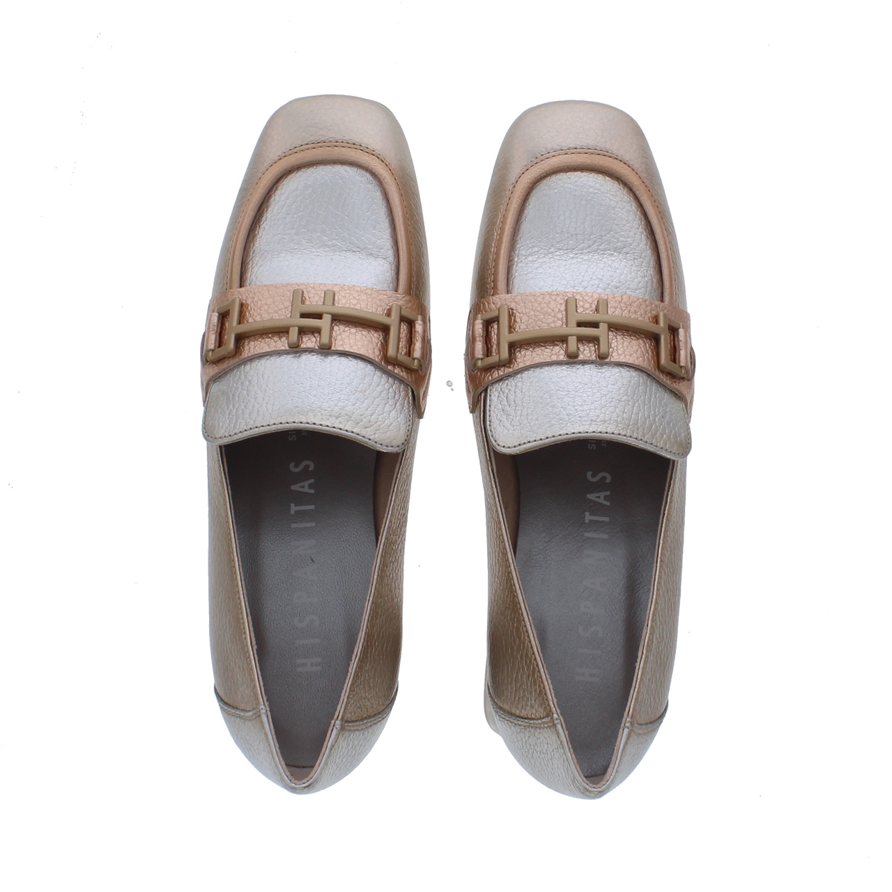 De Hispanitas Bolermomet Silver is de perfecte keuze voor de vrouw die zoekt naar stijl. Deze glanzende zilveren ballerina voegt een vleugje luxueuze flair toe aan elke outfit. Het zilver metallic bovenwerk biedt een subtiele glans die zorgt voor een moderne en elegante uitstraling, terwijl het minimalistische ontwerp de hakken tijdloos maakt. De zachte leren binnenvoering en flexibele zool zorgen voor uitstekend comfort, waardoor deze hak ideaal is voor zowel de dagelijkse activiteiten als speciale gelegenheden. Het bit-detail aan de voorkant voegt een vrouwelijke touch toe aan het ontwerp, waardoor de Bolermomet Silver zowel chique als veelzijdig is.
