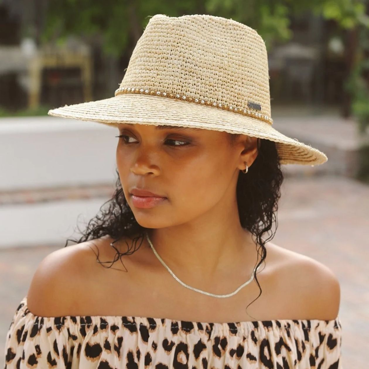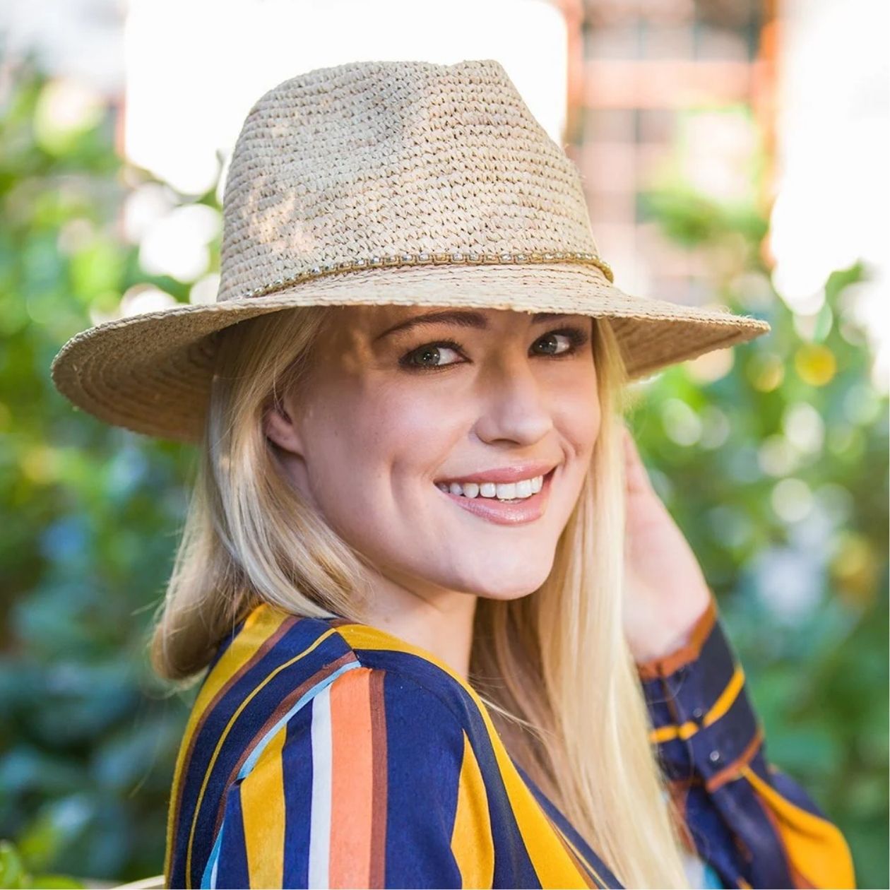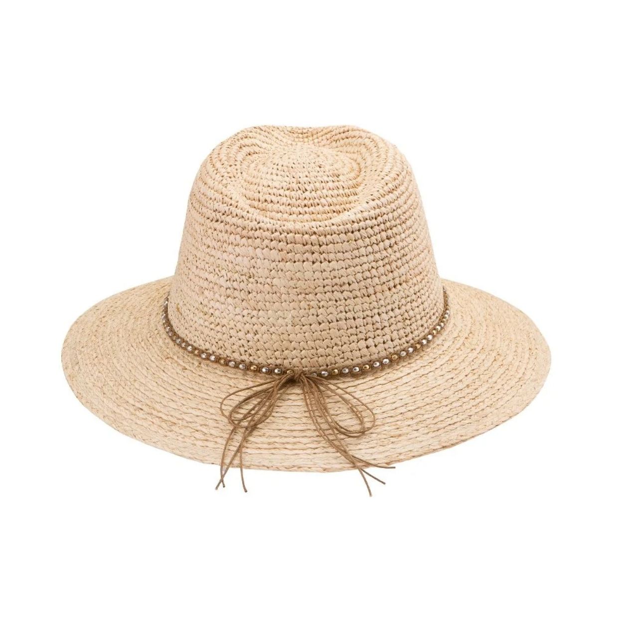 De Malibu, een prachtige zonnehoed van duurzaam geoogste Madagaskische raffia vezels, met een handgeweven, uniek design. Geknepen kroon met diamanté biesjes voor een vleugje sprankeling. Met UPF50+ UV-bescherming en 8 cm brede rand, gevoerd voor extra comfort. Voorzichtig behandelen en intern trekkoord voor perfecte pasvorm.