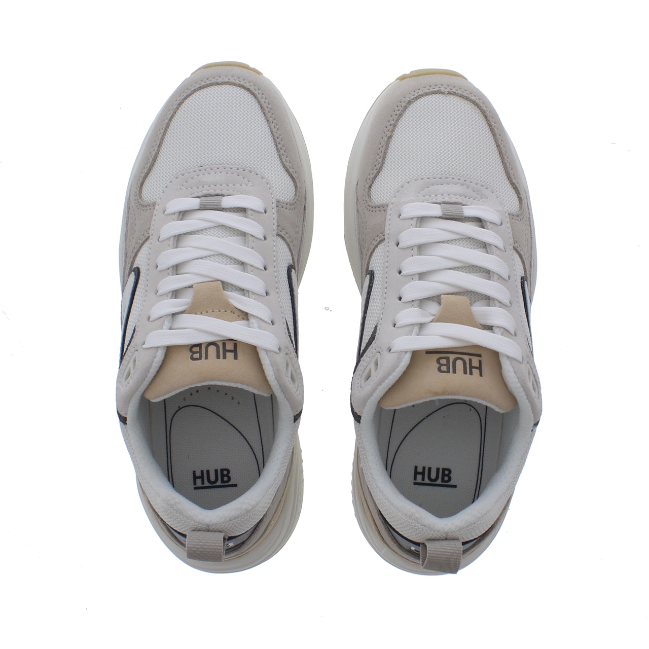 De HUB Glide Dames Sneaker in de kleurcombinatie Off Wht/Off Wht/Lt Bone is de perfecte keuze voor de vrouw die houdt van minimalistische stijl en comfort. Het bovenwerk van hoogwaardige synthetische materialen en leer heeft een lichte tint, wat de sneaker een frisse en tijdloze uitstraling geeft. De lichte beige accenten voegen net dat beetje extra toe, waardoor deze sneaker veelzijdig is en makkelijk te combineren met verschillende outfits. De HUB Glide staat bekend om zijn moderne, strakke design, maar biedt tegelijkertijd optimaal comfort door de lichte, flexibele zool. De ademende materialen zorgen ervoor dat je voeten de hele dag koel en droog blijven, terwijl de stevige rubberen zool zorgt voor grip en stabiliteit. Deze sneaker is ideaal voor een casual look, maar kan ook met meer geklede outfits worden gecombineerd voor een eigentijdse en modieuze uitstraling.
