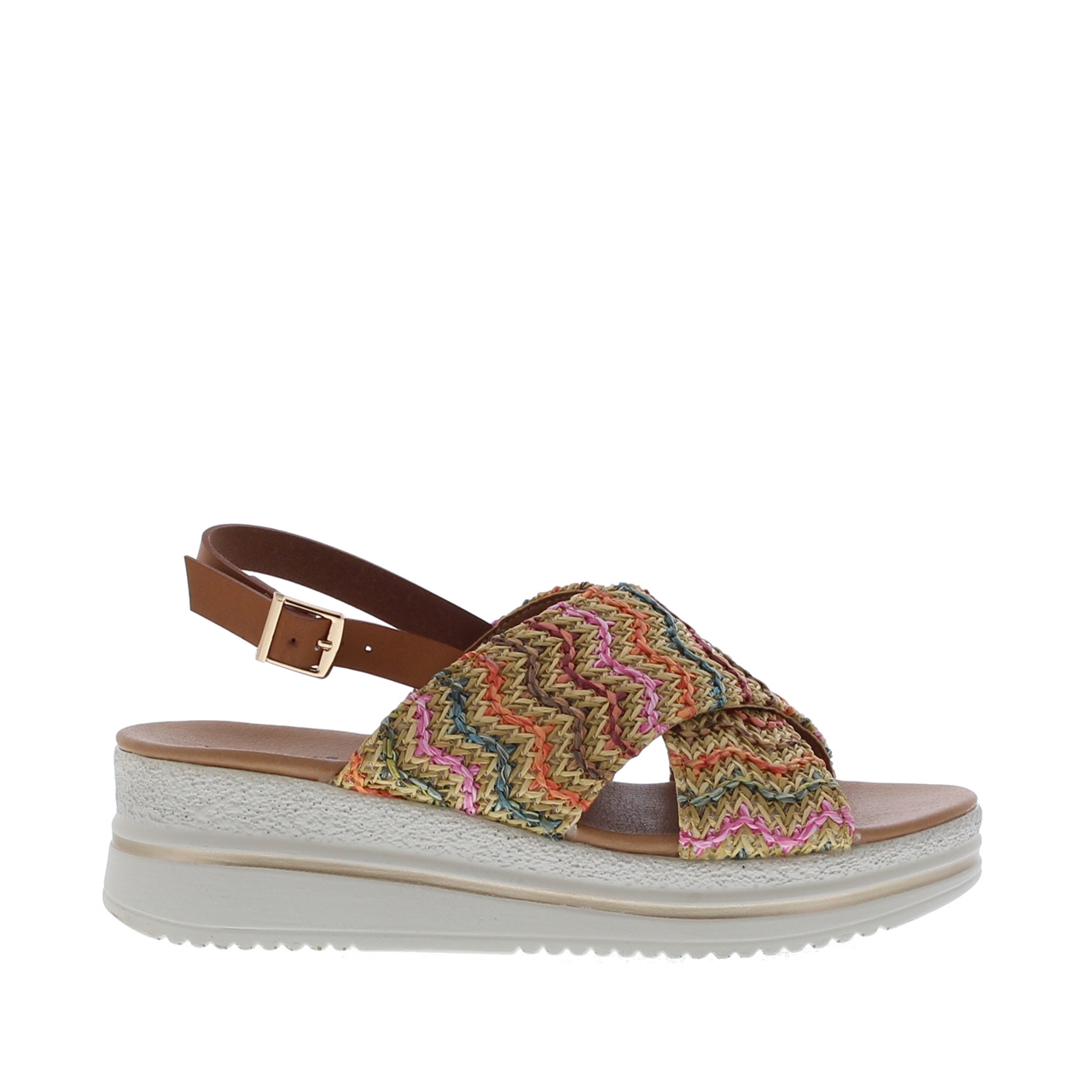 De Lisa&Jo Wikje-1 Plateau Multi Beige Multi is de perfecte sandaal voor vrouwen die op zoek zijn naar een stijlvolle en modieuze look. Deze trendy sandaal met gevlochten banden detail combineert een speels design met optimaal comfort, ideaal voor zowel casual als feestelijke gelegenheden. De buitenkant is gemaakt van hoogwaardig imitatieleer, wat zorgt voor een luxe uitstraling en een soepele pasvorm. De binnenkant is eveneens gevoerd met imitatieleer, wat bijdraagt aan extra draagcomfort. De antislip zool biedt stabiliteit en grip, ideaal voor dagelijks gebruik. De plateauzool zorgt voor extra hoogte zonder in te leveren op comfort, waardoor je moeiteloos stijlvol voor de dag komt.
