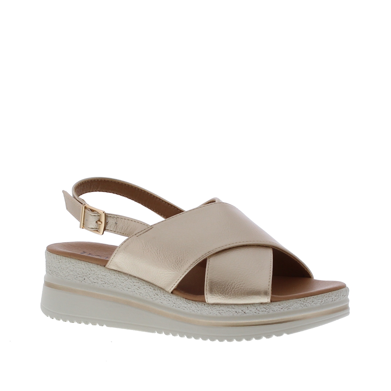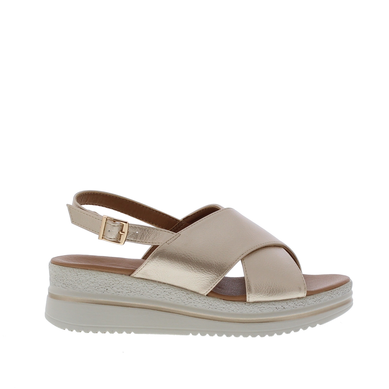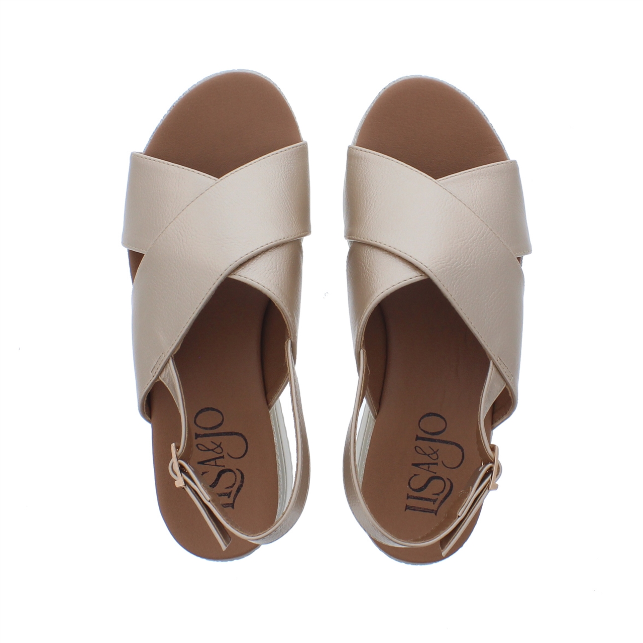 De Lisa&Jo Wikje Plateau Effen Gold is de perfecte keuze voor dames die op zoek zijn naar een modieuze en comfortabele sandaal met een trendy uitstraling. Deze gouden sandaal straalt luxe en elegantie uit, waardoor hij een echte blikvanger is. De buitenkant is gemaakt van hoogwaardig imitatieleer, wat zorgt voor een stijlvolle en soepele pasvorm. De binnenkant is eveneens gevoerd met imitatieleer, wat bijdraagt aan extra draagcomfort. De antislip zool biedt stabiliteit en grip, perfect voor langdurig gebruik. De plateauzool zorgt voor extra hoogte zonder in te leveren op comfort, waardoor je moeiteloos stijlvol voor de dag komt.