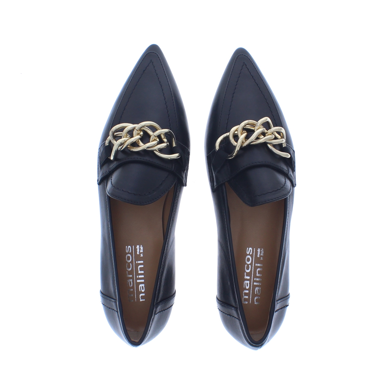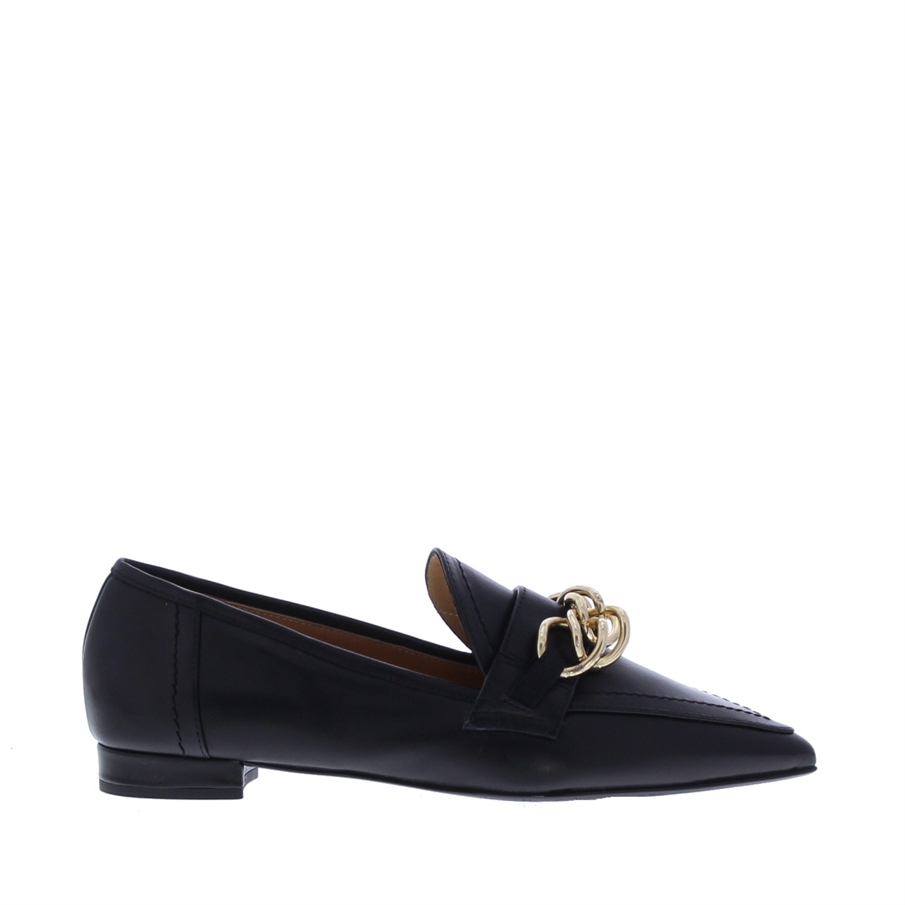 Met deze instapper van het merk Nalini staal je pure klasse uit. Dit model is de perfecte mix van elegantie en stijl. Deze elegante schoen is vervaardigd uit hoogwaardig leer en heeft een spitse leest die elke outfit aanvult. De antislipzool en hakhoogte van 2 cm bieden uitstekende stabiliteit, terwijl het praktische instapdesign het aan- en uittrekken eenvoudig maakt. De gouden sierketting op de wreef voegt een luxe flair toe aan het design.