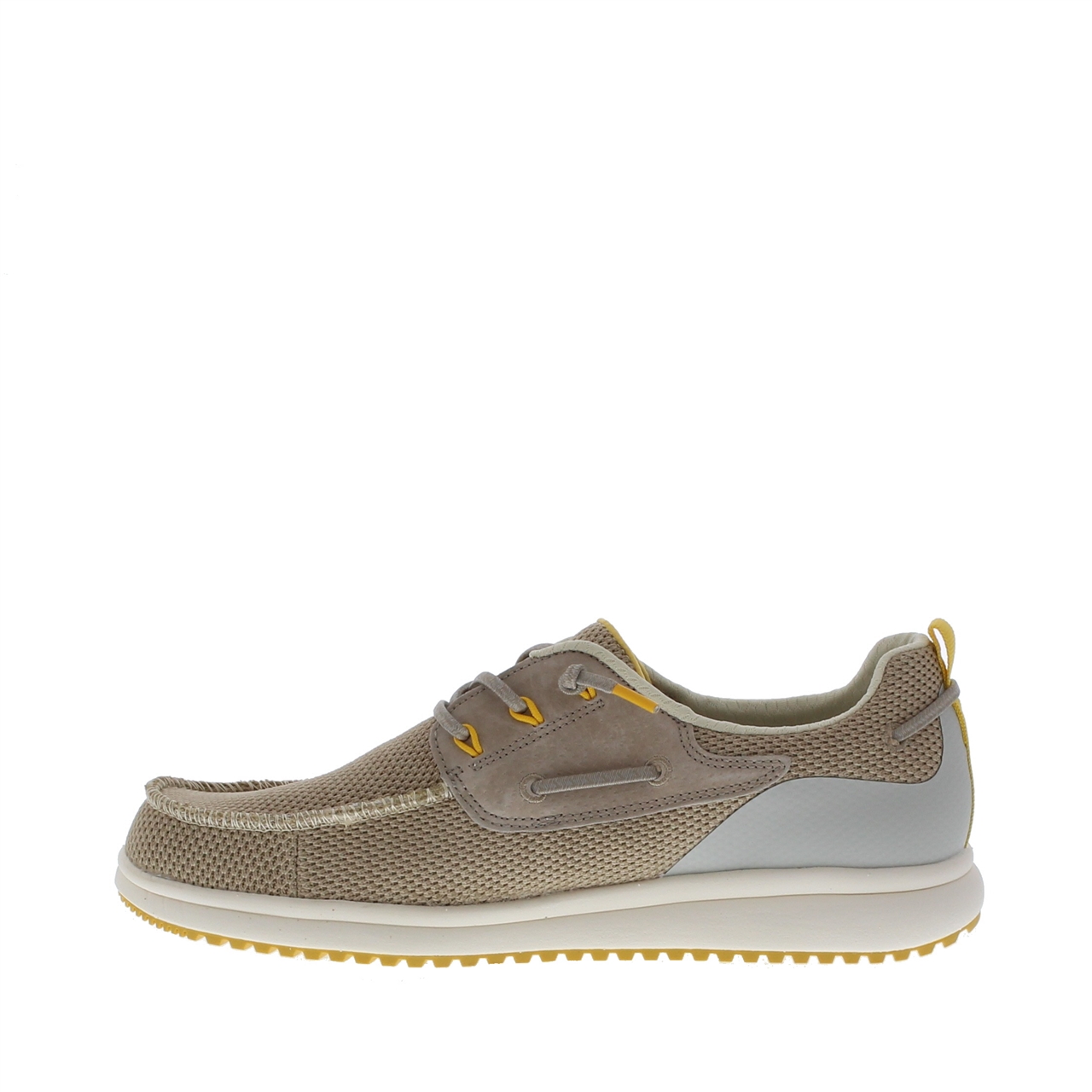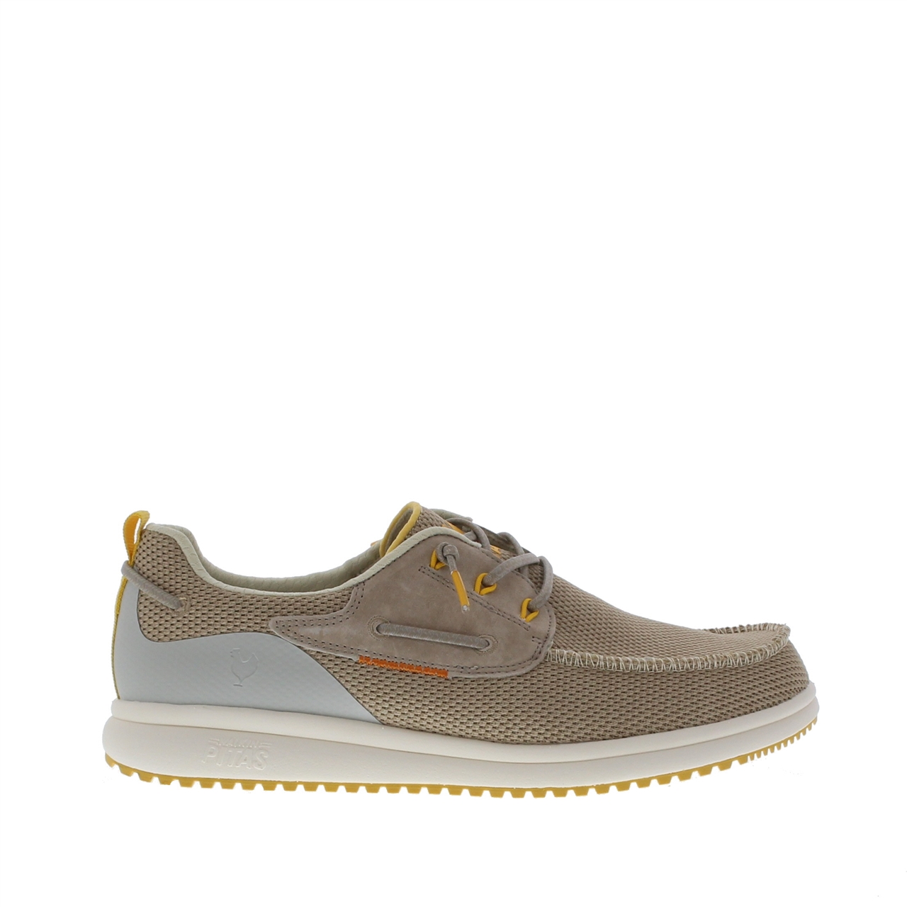 Op zoek naar een comfortabele en sportieve herenschoen die net even anders is? De Pepitas Bay Heren Veterschoen is een moderne instapper met vetersluiting, verkrijgbaar in de kleuren blauw en beige. Opvallende gele details geven deze schoen een frisse en dynamische uitstraling, perfect voor wie durft te combineren. Dankzij het ademende mesh aan de buitenkant en de zachte textiele voering is deze schoen ideaal voor dagelijks gebruik, zeker in het voorjaar en de zomer. De flexibele rubberen zool zorgt voor uitstekende grip en bewegingsvrijheid, terwijl de ronde leest bijdraagt aan een comfortabele pasvorm. Of je hem nu draagt onder een jeans, chino of korte broek, deze schoen voegt gegarandeerd een sportieve touch toe aan je outfit.