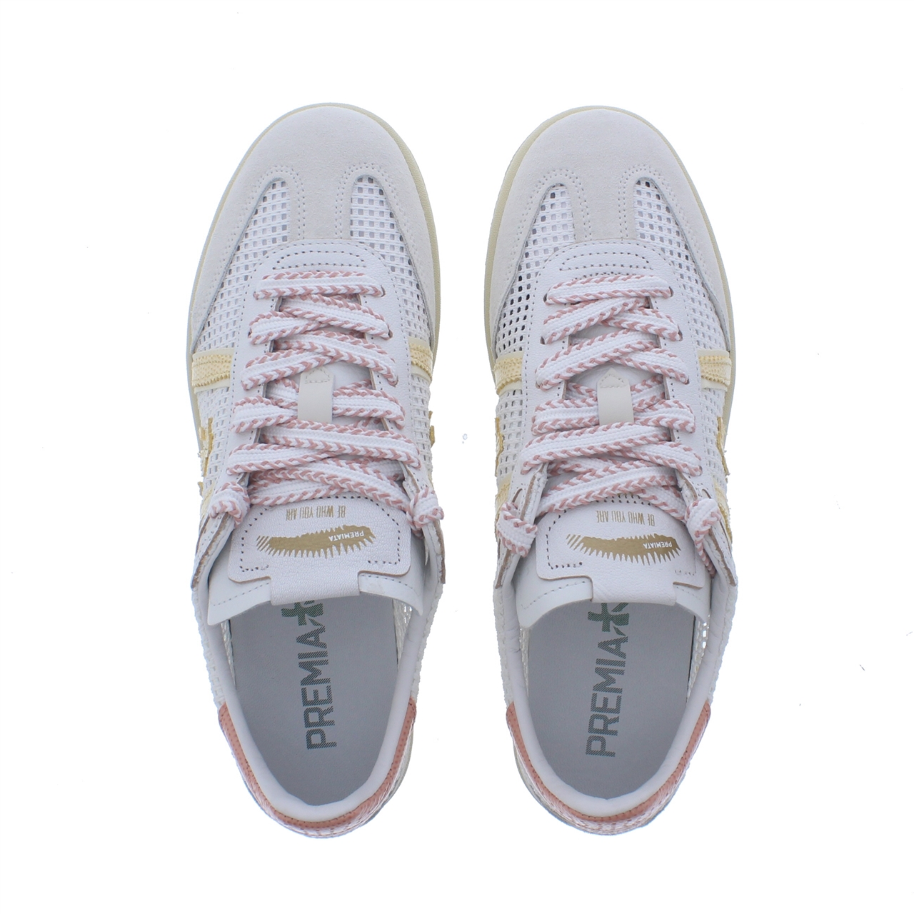 Premiata Bonnie Dames Sneaker is een verfijnde sneaker in gebroken wit, ontworpen voor een lichte, zomerse uitstraling met een eigenzinnige twist.