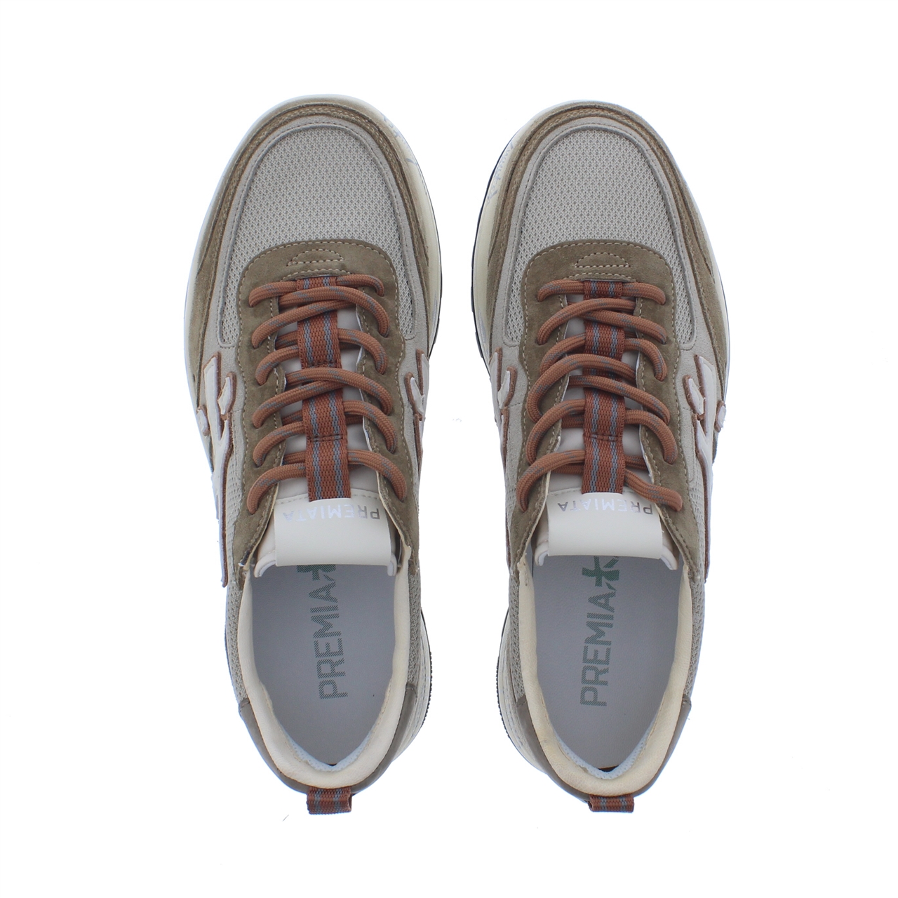 De Premiata Nous Heren Sneaker in taupe is een stijlvolle sneaker met een sportieve uitstraling. Het bovenwerk is gemaakt van een combinatie van suède en ademend mesh, wat zorgt voor een prettige pasvorm en een frisse look. De leren binnenvoering voelt comfortabel aan en zorgt voor een goede ventilatie. De rubberen zool met het herkenbare Premiata-ontwerp biedt fijne grip en veerkracht tijdens het lopen. Dankzij de ronde leest en de klassieke vetersluiting draag je deze sneaker moeiteloos bij een casual outfit of een nette jeans.