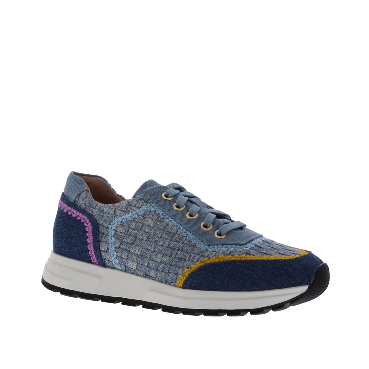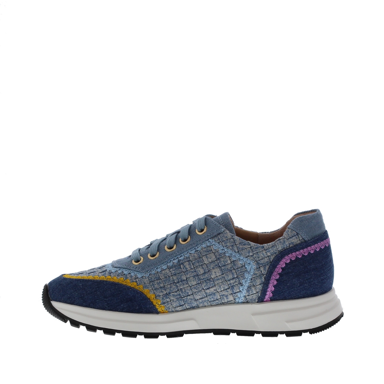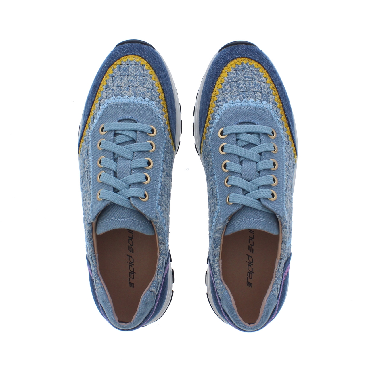 De Rapid Soul Winna-1 Jeans Vlecht JM2 Blue Denim is een perfecte keuze voor de modebewuste vrouw die op zoek is naar zowel comfort als stijl. Deze lichte blauwe sneaker combineert stof en imitatieleer aan de buitenkant voor een casual uitstraling. Het gebruik van rubberen zolen zorgt voor uitstekende grip en flexibiliteit, terwijl de ronde leest de perfecte pasvorm biedt voor dagelijks comfort. De vetersluiting zorgt voor een goede en stevige pasvorm, terwijl de denim vlakken op het ontwerp een unieke en moderne touch toevoegen. Deze sneaker past bij verschillende casual outfits en is veelzijdig genoeg om te combineren.