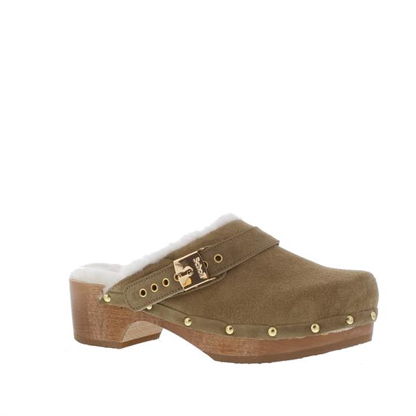 De originele houten klomp van het merk Scholl, is een waar icoon uit de jaren 70 en een onmisbare aanvulling om elke outfit een retro tintje te geven. De Robin suède klomp is volledig ontworpen en met hoogwaardige materialen vervaardigd in Italië. Dit model heeft een bovenwerk van suède en is gevoerd met Faux Fur wat zorgt voor een uitzonderlijk zachte en comfortabele pasvorm. Het bovenwerk heeft een verstelbare gouden gesp over de wreef en heeft goudkleurige accenten. Deze Robin uitvoering onderscheidt zich door de ronde neus en gedurfde stijl, de perfecte combinatie van mode en functionaliteit.