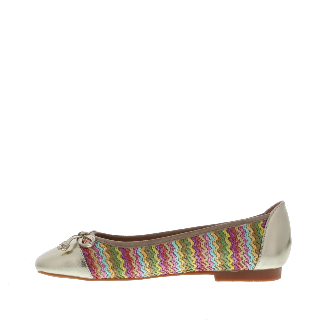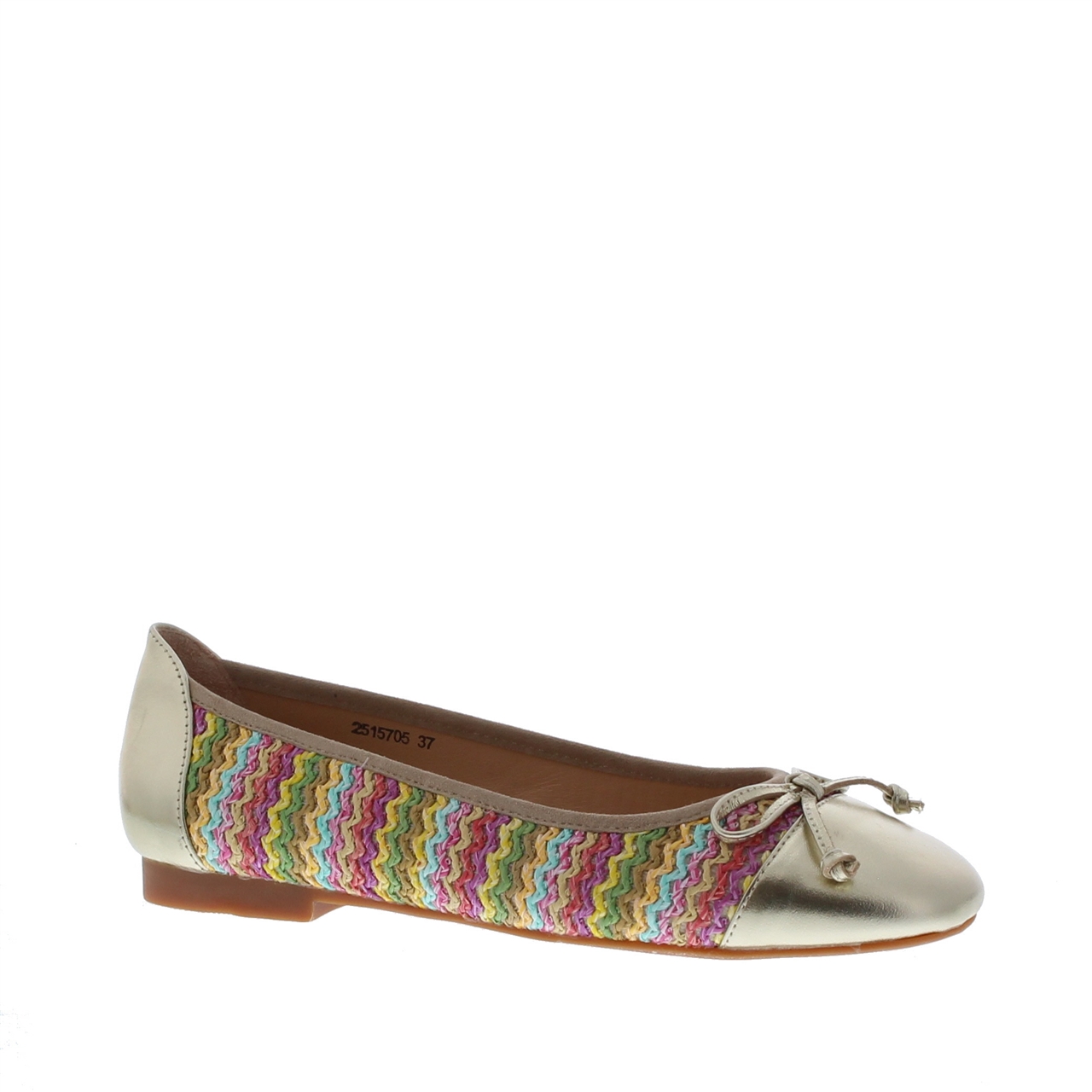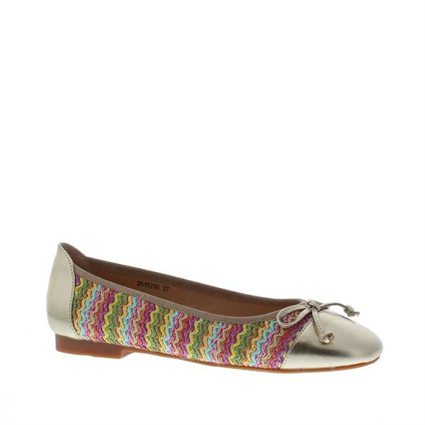 De Si Azalea Multi Ballerina 7018-2 Multi is dé perfecte combinatie van stijl, comfort en een speelse uitstraling. Deze instapper is uitgevoerd in een luxe mix van leer en textiel, wat zorgt voor een hoogwaardige afwerking en een comfortabele pasvorm. De ronde leest biedt extra draagcomfort, terwijl de flexibele rubberen zool zorgt voor een stevige grip. Wat deze ballerina écht bijzonder maakt, is het geweven touwdetail in meerdere kleuren, dat een opvallende touch toevoegt. De combinatie van goud en multicolor accenten maakt deze schoen een echte eyecatcher, ideaal om jouw outfit nét dat beetje extra te geven.