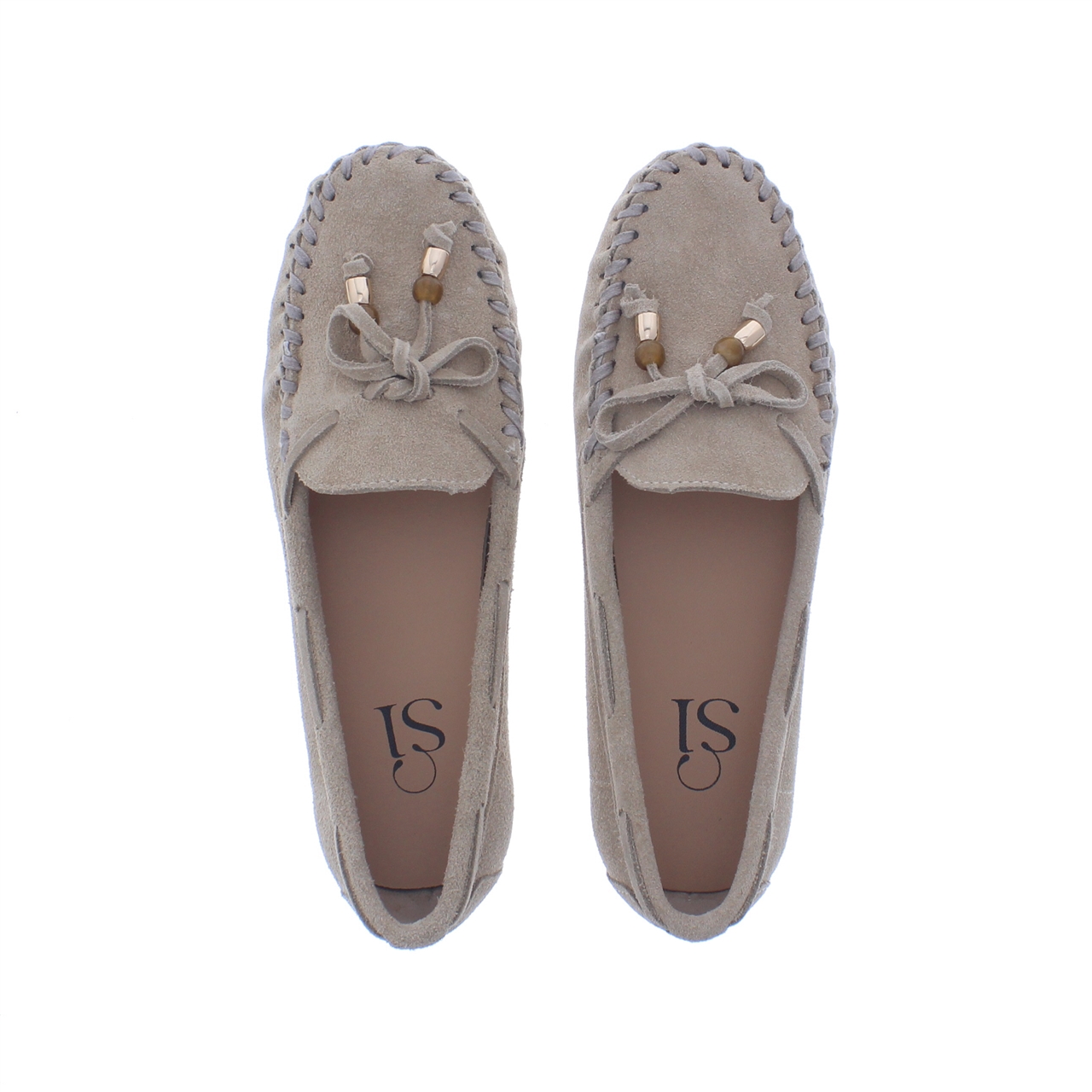 Si Hanasa-2 Moc Strik en Kraal Beige Cow Suede