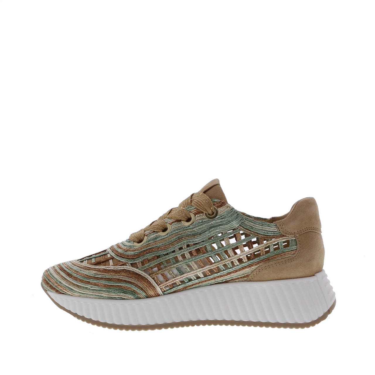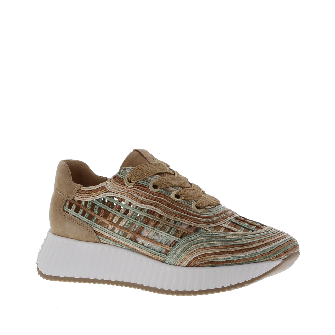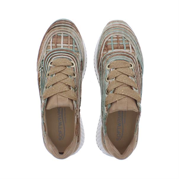 De Softwaves Raffia is een stijlvolle sneaker die comfort en een natuurlijke uitstraling perfect combineert. Gemaakt van hoogwaardig raffia aan de buitenkant, straalt deze schoen een zomerse en speelse look uit. Dankzij het touwdesign heeft de sneaker een unieke en modieuze touch. De binnenkant is gevoerd met zacht leer, wat zorgt voor een ademend en comfortabel gevoel, ideaal voor langdurig dragen. De ronde neus biedt voldoende ruimte voor de tenen, terwijl de stevige rubberen plateauzool niet alleen extra hoogte geeft, maar ook uitstekende grip en stabiliteit biedt. Dankzij de vetersluiting kun je de sneaker eenvoudig aanpassen voor een perfecte pasvorm. Bovendien is het voetbed uitneembaar, waardoor je jouw eigen inlegzolen kunt gebruiken voor extra comfort en ondersteuning.