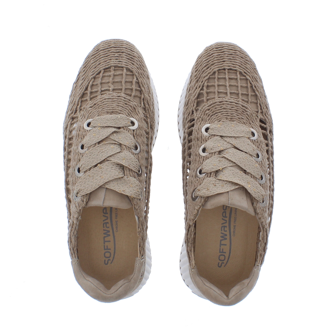 De Softwaves 018 Macrame Sand is de perfecte combinatie van stijl, comfort en een natuurlijke uitstraling. Deze modieuze sneaker in bruine tinten heeft een uniek macramé design, waardoor hij een trendy look krijgt. De buitenkant is gemaakt van hoogwaardig textiel, wat zorgt voor een luchtig en lichtgewicht gevoel. De binnenkant is gevoerd met zacht leer, wat bijdraagt aan extra comfort en ademend vermogen. Dankzij de ronde neus biedt de sneaker voldoende ruimte voor de voeten, ideaal voor langdurig dragen. De stevige rubberen plateauzool geeft niet alleen extra hoogte, maar zorgt ook voor optimale grip en stabiliteit. De vetersluiting maakt het mogelijk om de sneaker perfect passend te maken, terwijl het uitneembare voetbed ruimte biedt voor eigen inlegzolen.