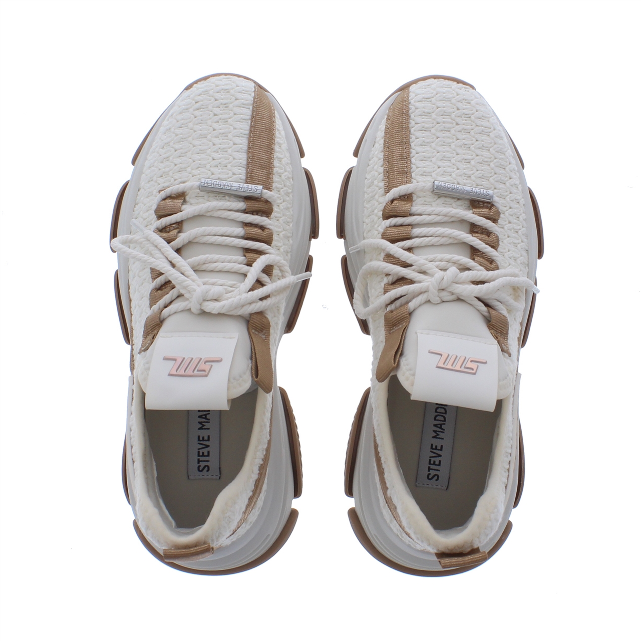 De Steve Madden Project Dames Sneaker combineert sportieve stijl met luxe details, en is verkrijgbaar in twee prachtige kleurencombinaties die je outfit een moderne upgrade geven: Bronze Gold/Silver – De bronzen en zilveren accenten zorgen voor een trendy, metallic uitstraling, terwijl de combinatie van de twee kleuren een moderne look biedt die makkelijk te combineren is met verschillende stijlen, van casual tot chique. Cream/Gold – De romige crèmekleur met gouden details ziet er lekker strak uit. Deze combinatie is perfect voor een subtiele, maar luxe uitstraling die zowel sportief als chic kan zijn. De Sneaker heeft een comfortabele pasvorm, met een lichte zool die zorgt voor optimale demping bij elke stap. Het premium bovenwerk van leer en textiel biedt zowel ademend vermogen als duurzaamheid, en de metallic details voegen een gedurfde, moderne twist toe aan het ontwerp.