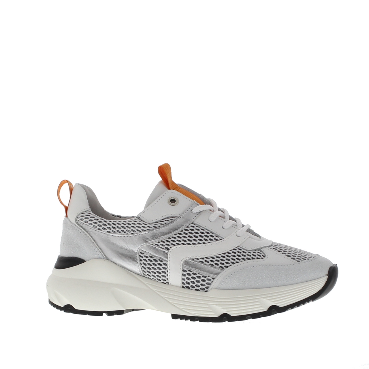 sneaker heeft een zooldikte van 4 cm en is toch heel flexibel en echt een lichtgewicht. De loopzool is opgedeeld in een vlakkenprofiel, waardoor de schoen ook nog eens