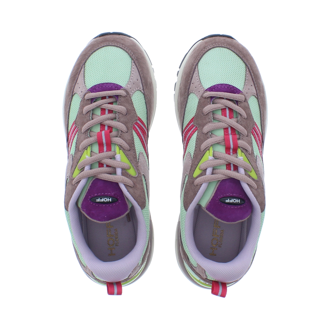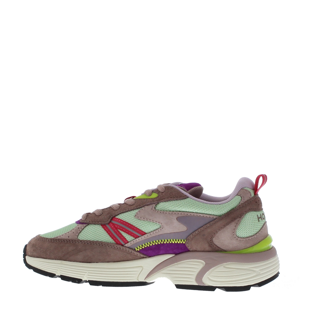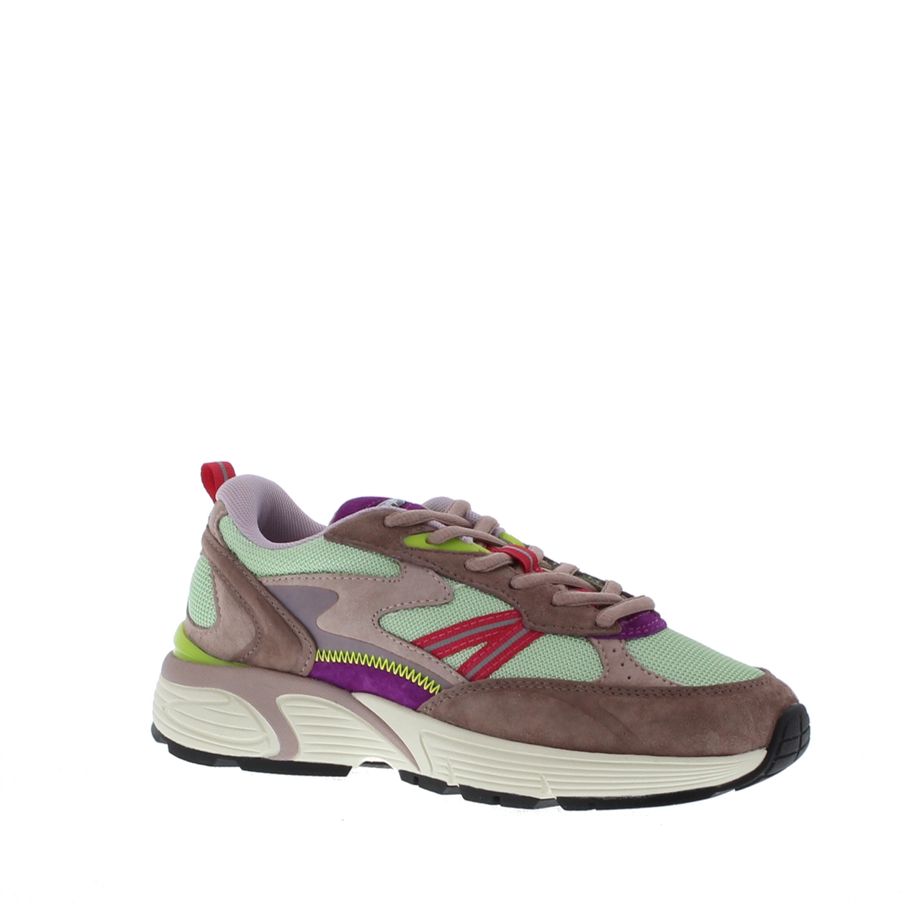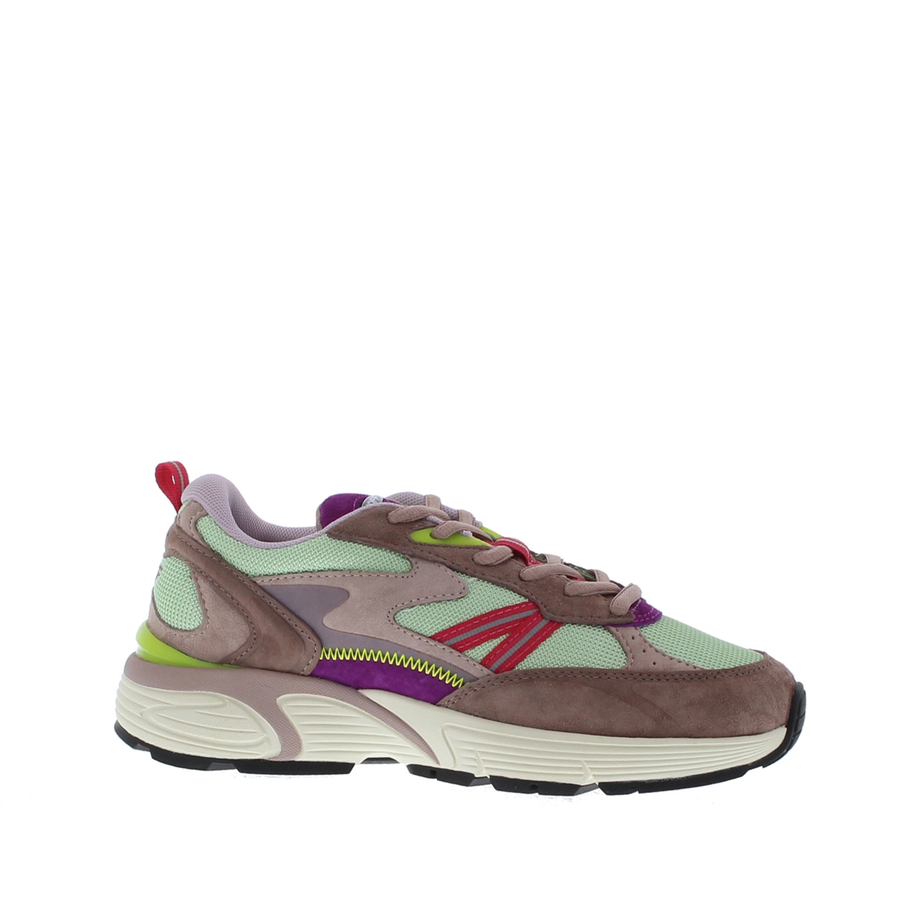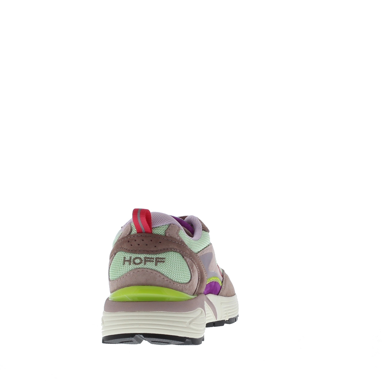 Deze dames sneaker van het merk The Hoff is een echte show stopper. Het heeft de look and feel van een hardloopschoen. Dit model is uitgevoerd in suède in combinatie met mesh textiel. Leuke kleine details zijn het lusje op de hiel en de verschillende kleur accenten. De schoen heeft een chunky rubberen zool en een uitneembaar voetbed. Het patroon van de suède panelen en mesh textiel geeft dit model een sportieve en unieke look. Wil je deze gave dames sneakers van The Hoff snel in huis hebben? Bestel dan nu online of kom naar een van onze winkels.