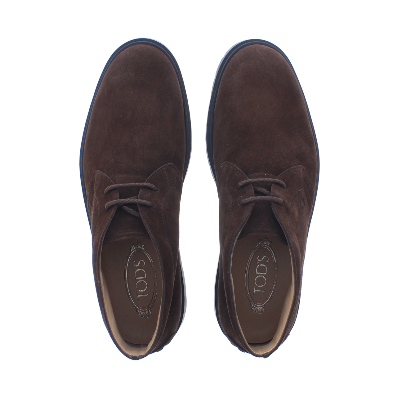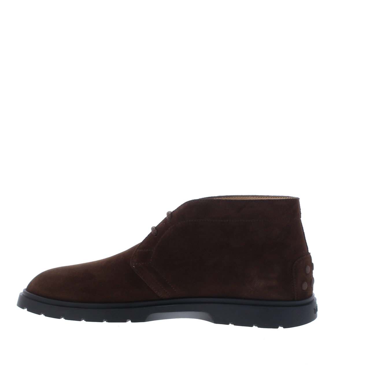 De buitenkant is uitgevoerd in suède, wat het model een zachte, rijke textuur geeft. Aan de binnenzijde is gekozen voor leer, waardoor de schoen een luxe gevoel biedt bij het aantrekken. De rubberen zool voegt een solide basis toe en past bij het karakter van deze Tod’s.