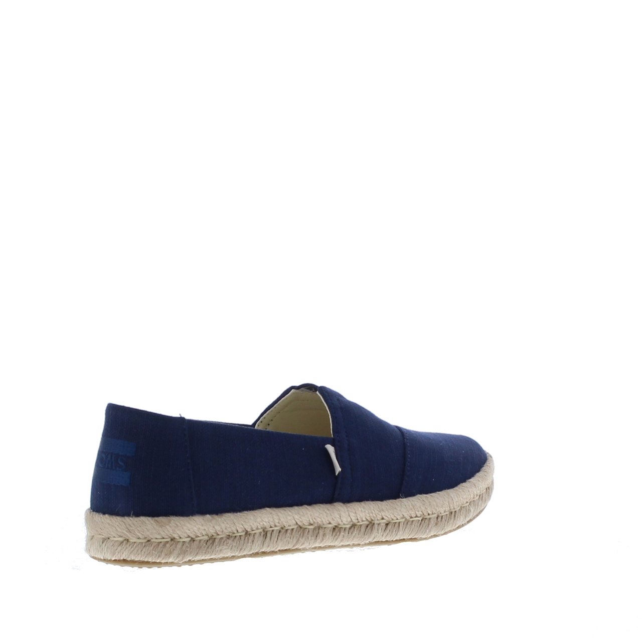 De zool is uitgevoerd in touw, wat de schoen een zomerse, casual uitstraling geeft en mooi contrasteert met het strakke silhouet. De Toms is verkrijgbaar in blauw, groen en zwart, waardoor je makkelijk kiest voor een frisse kleur of juist een tijdloze basis.