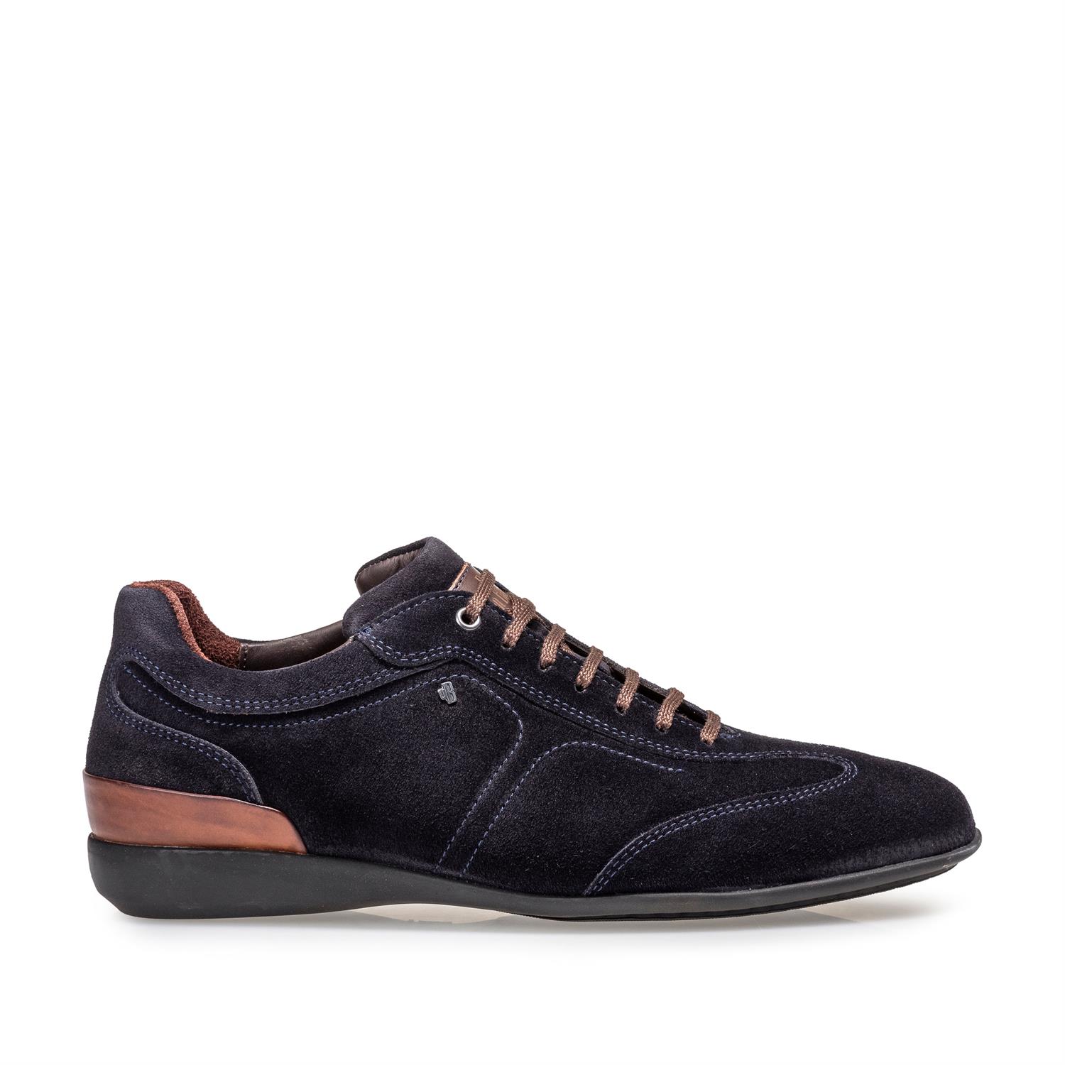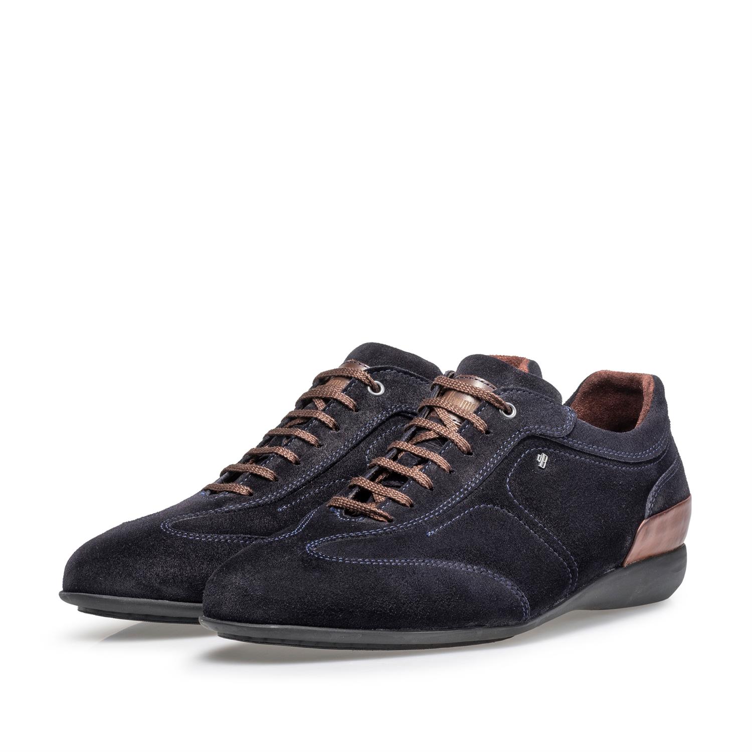 Het bovenwerk is uitgevoerd in suède, wat de schoen een zachte, rijke uitstraling geeft in zowel blauw als bruin. De vetersluiting houdt het geheel klassiek en verzorgd, terwijl de verfijnde belijning zorgt voor een nette, casual uitstraling.