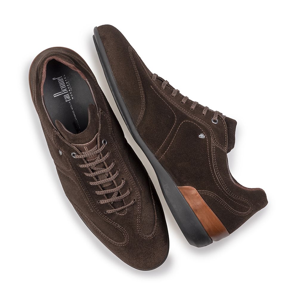 Het bovenwerk is uitgevoerd in suède, wat de schoen een zachte, rijke uitstraling geeft in zowel blauw als bruin. De vetersluiting houdt het geheel klassiek en verzorgd, terwijl de verfijnde belijning zorgt voor een nette, casual uitstraling.